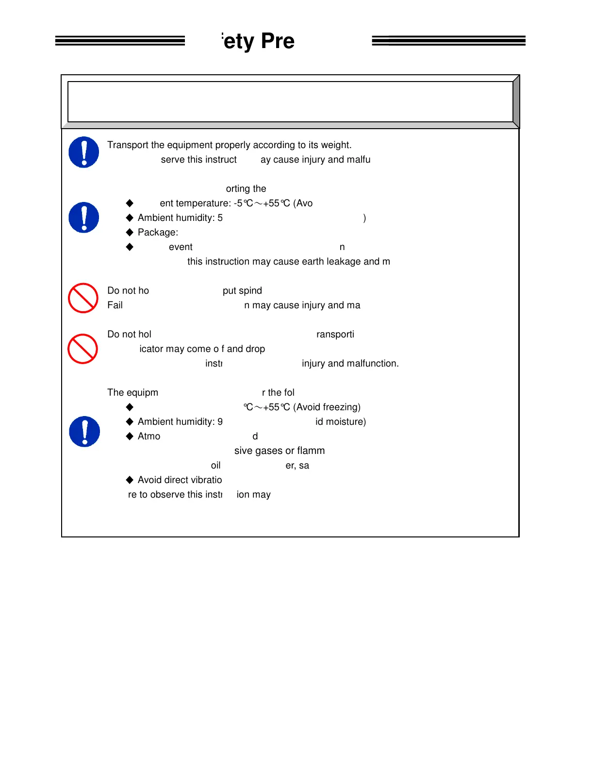 Transport the equipment properly according to its weight.