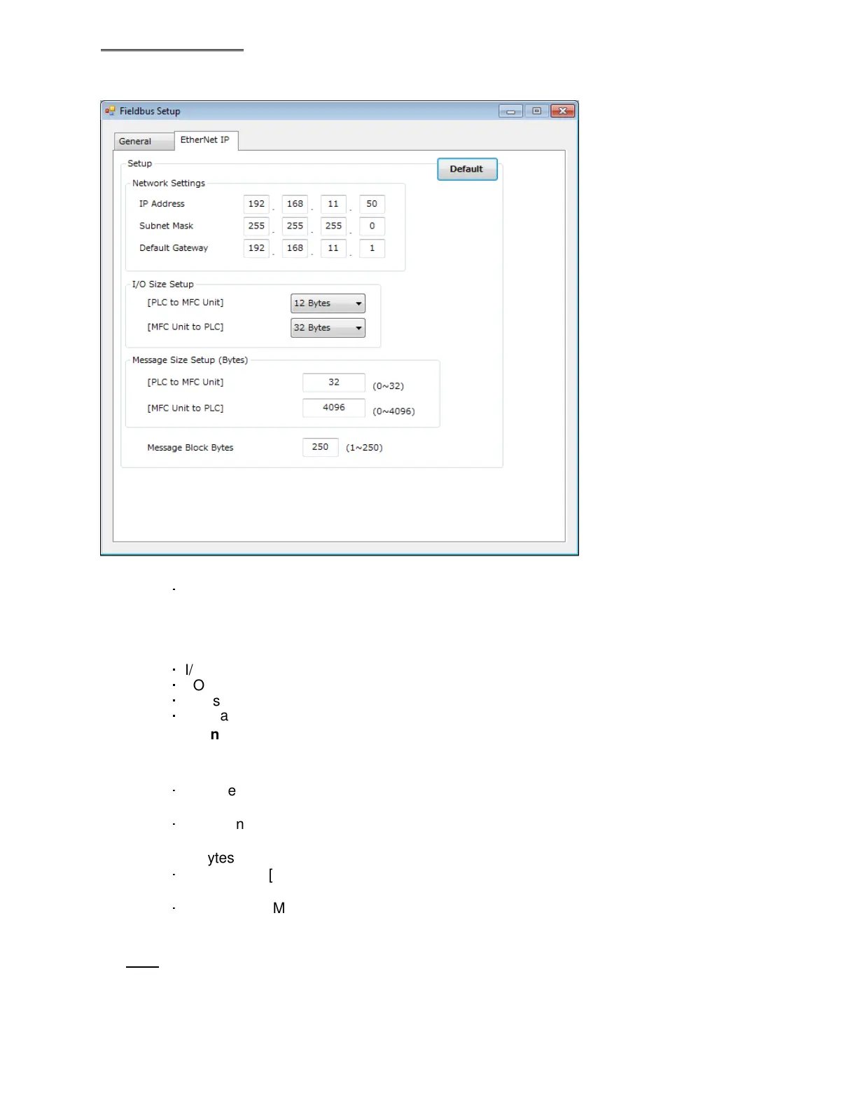 I/O Setting Data Length (FEC OUTPUTS) [MFC Unit to PLC]: 32 bytes [256 bits]