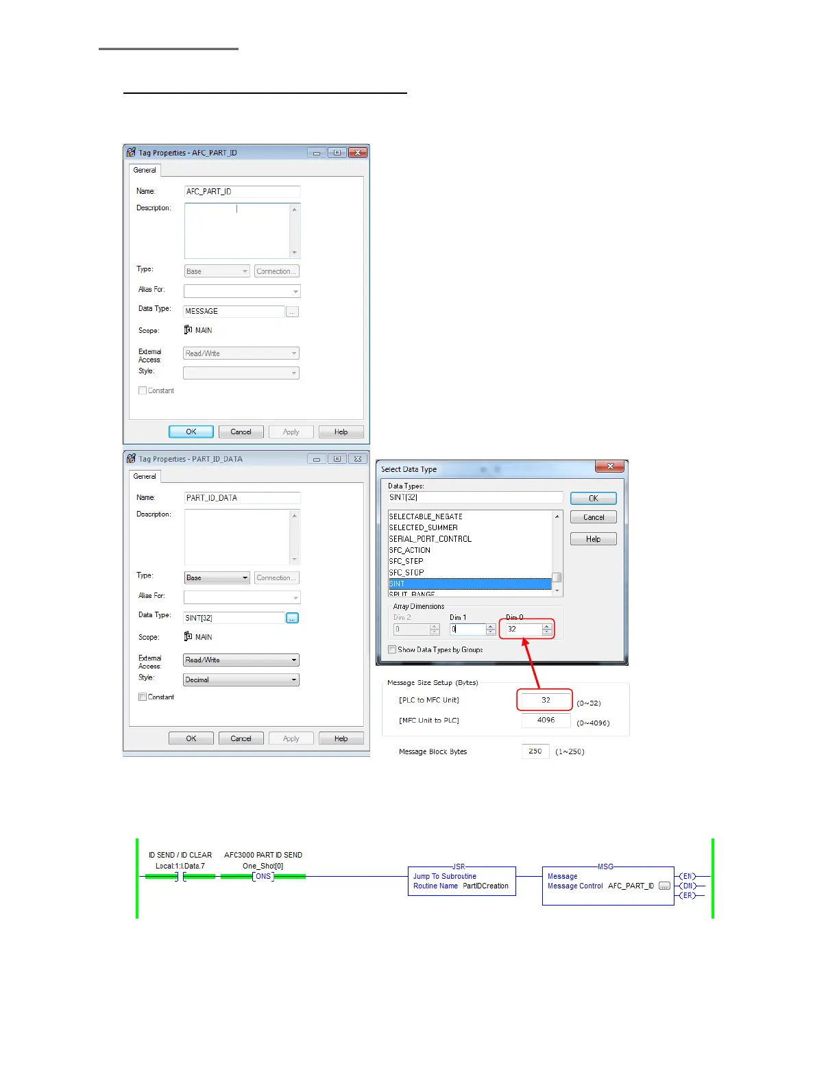 One “Message” tag and one SINT[32] tag needs to be added to use this function.