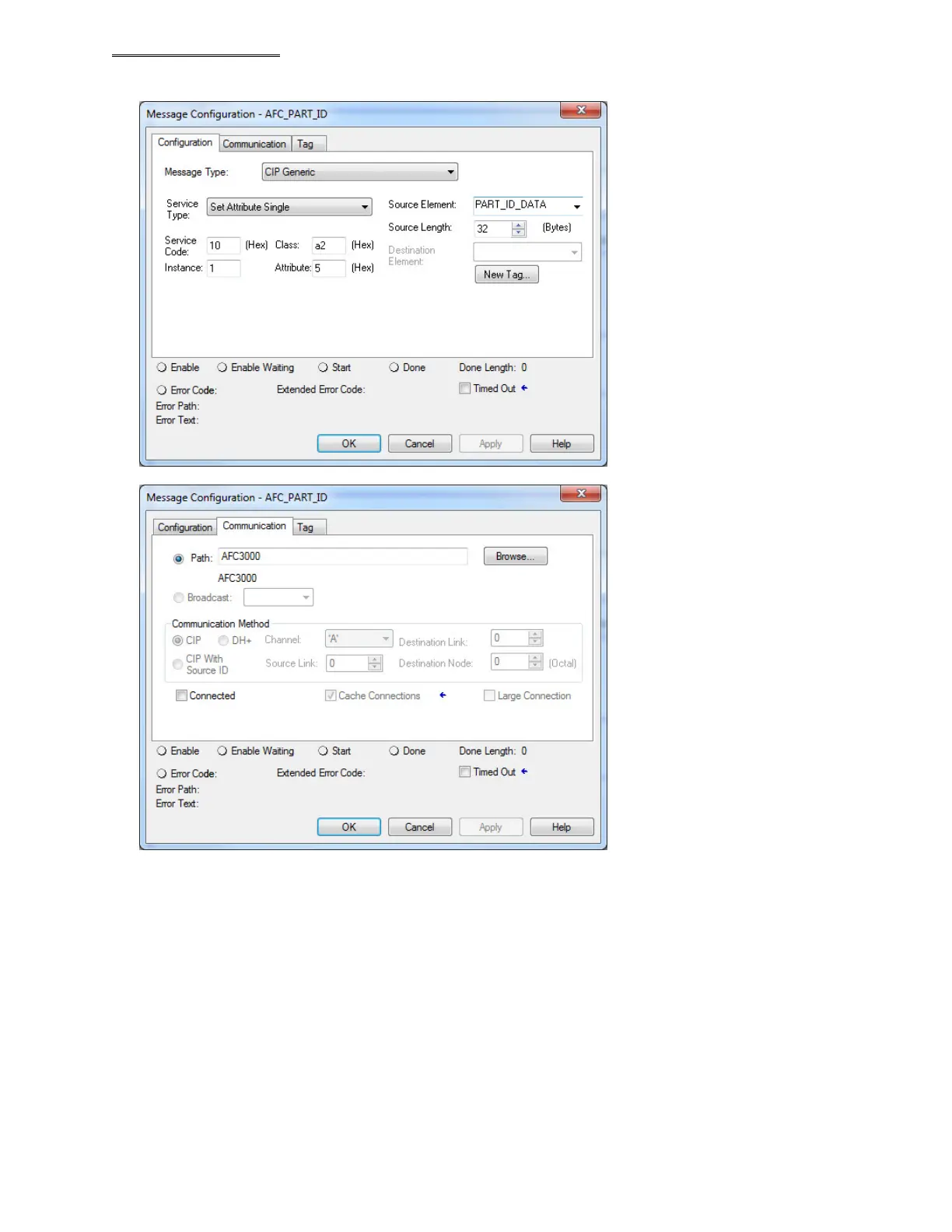 The configuration of AFC_PART_ID should be as shown below.