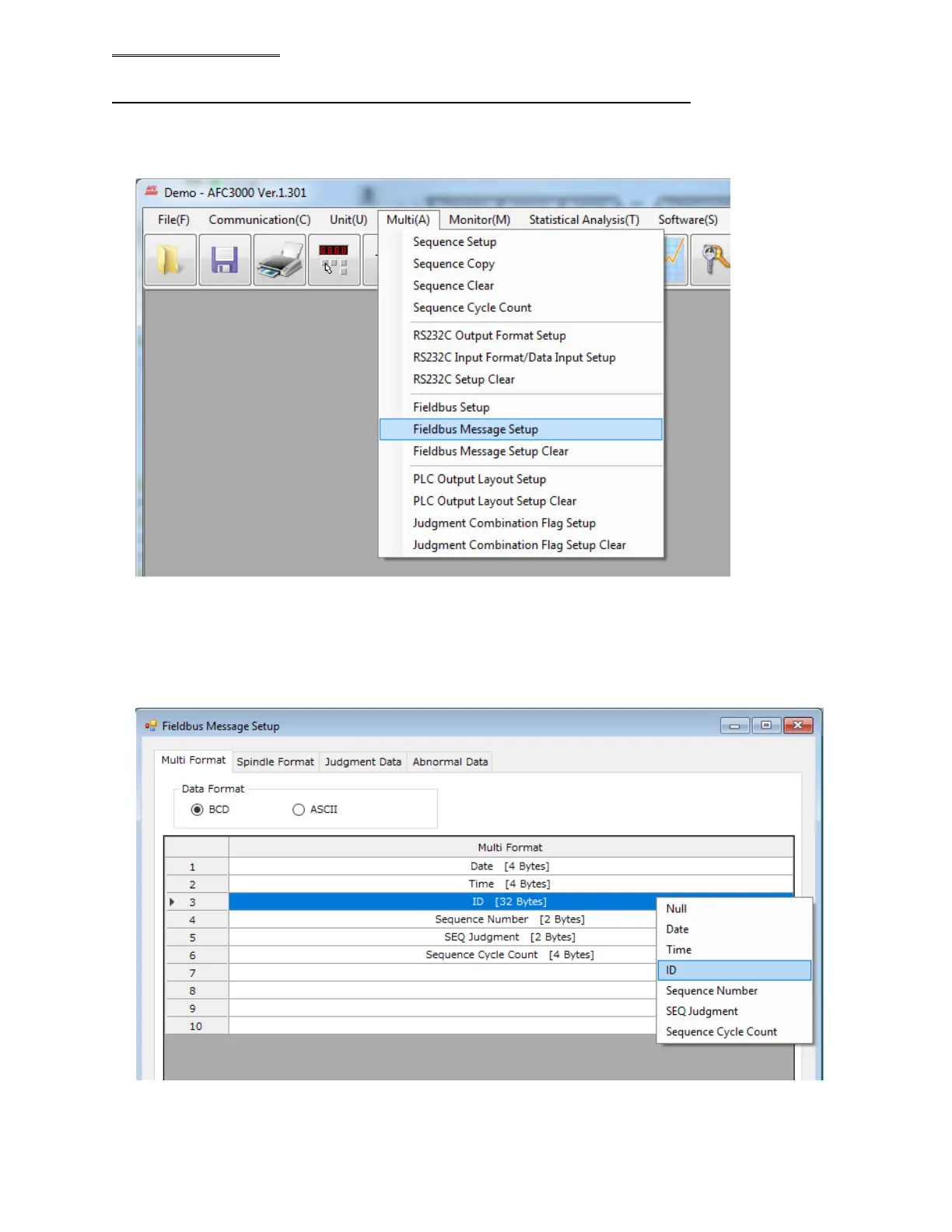 Select “Field Bus Message Setup” from “Multi” pull down menu.
