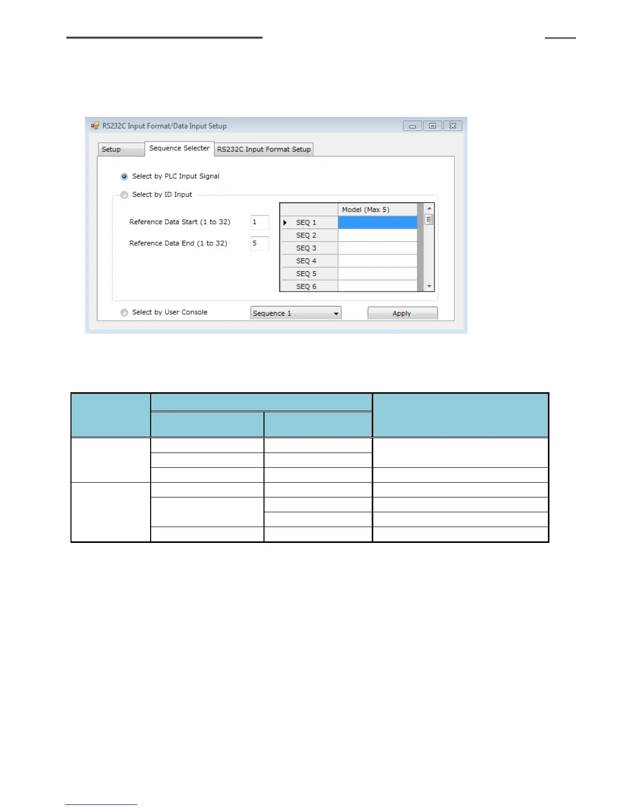 With “Select by ID Input,” a maximum of 5 ASCII letters can be set for each sequence No. (that would