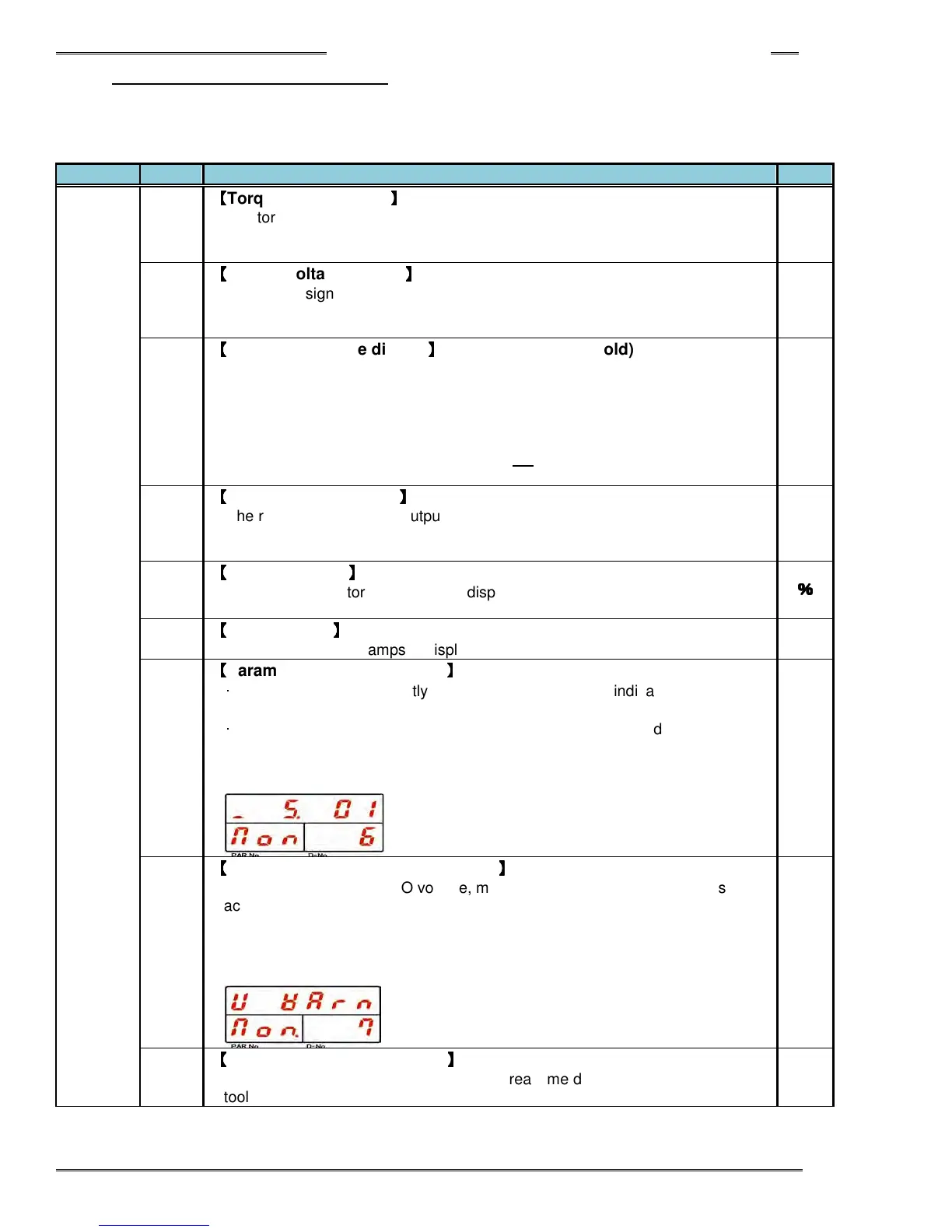 The following data is displayed in Real Time Display Mode. (“Non” (Monitor) is indicated in the PAR No.