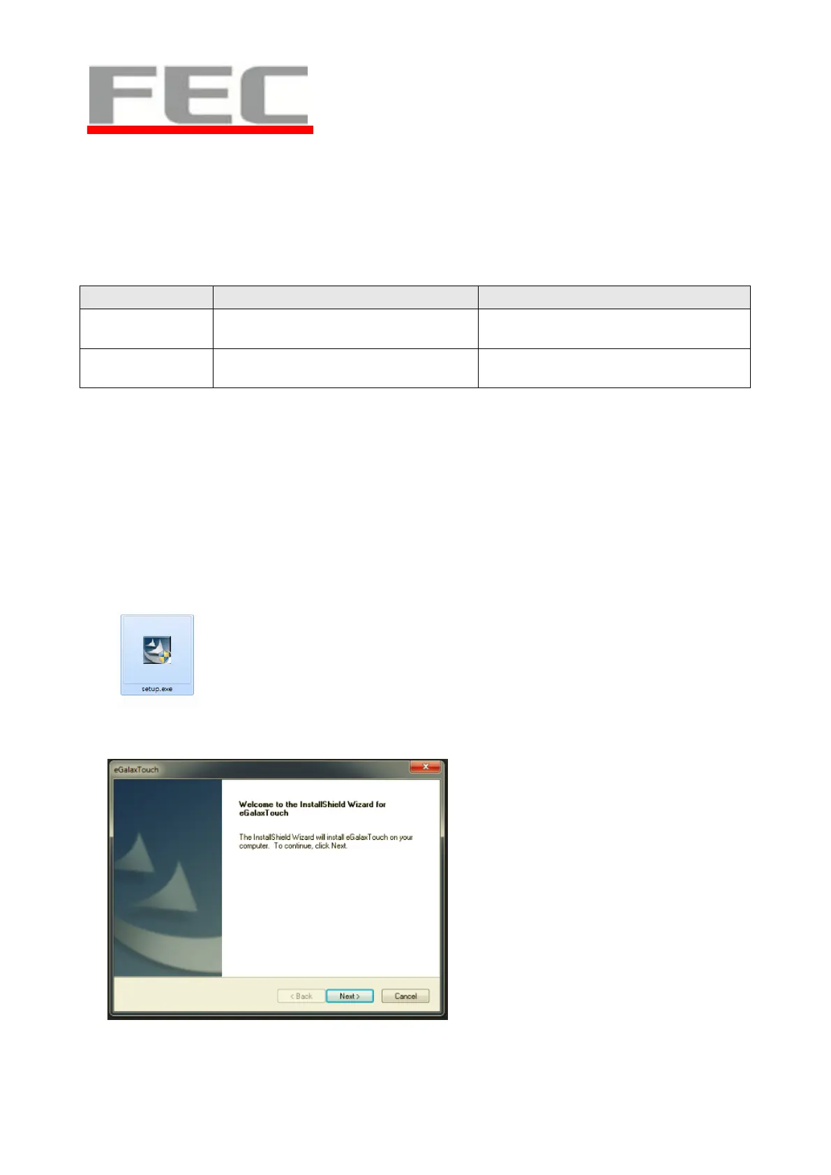 1. Mode of FEC Capacitive Touch Panel and default settings