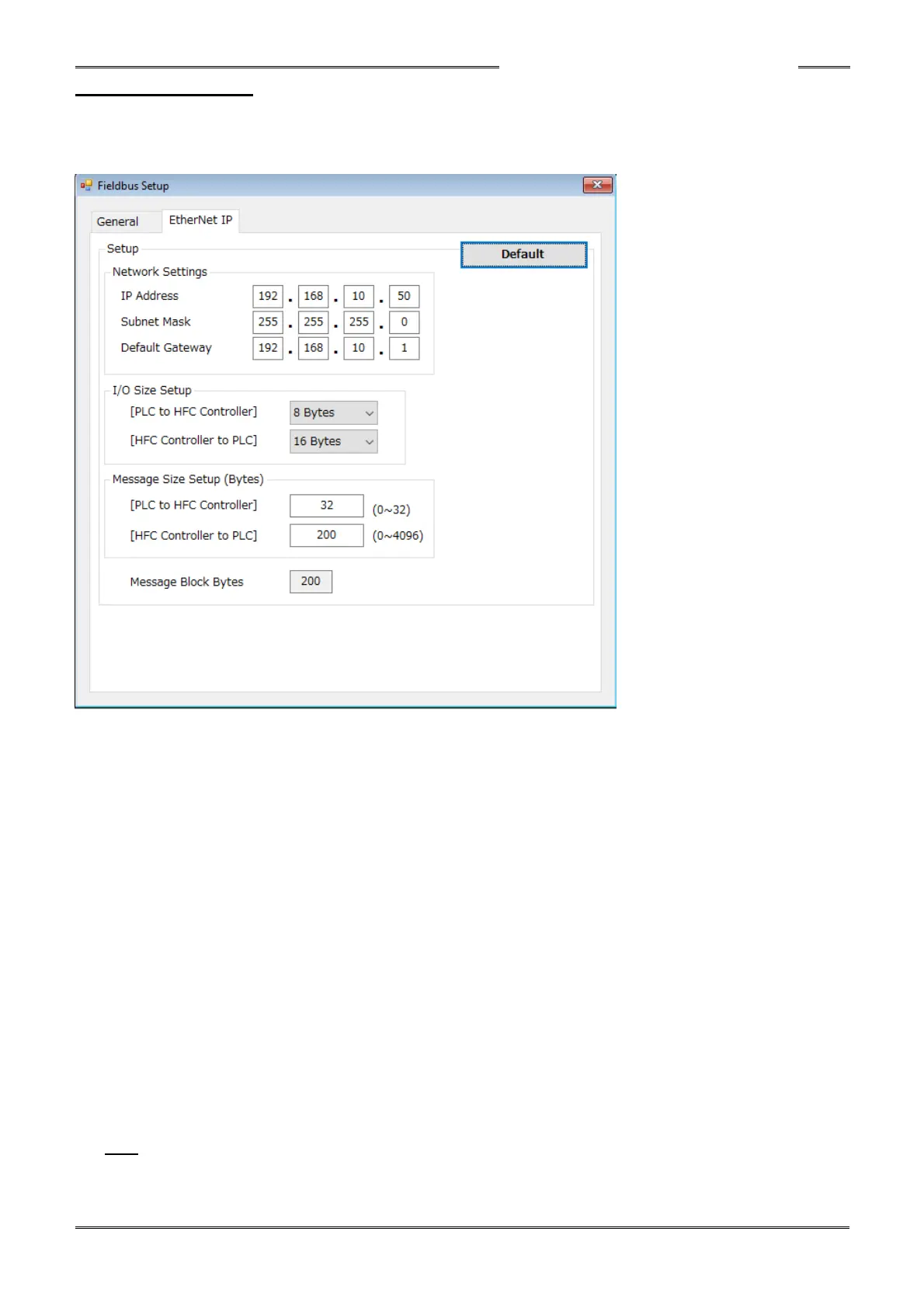 Setting of the Ethernet-I/P interface is performed in the Ethernet-I/P screen (of the HFC3000 Software). The network