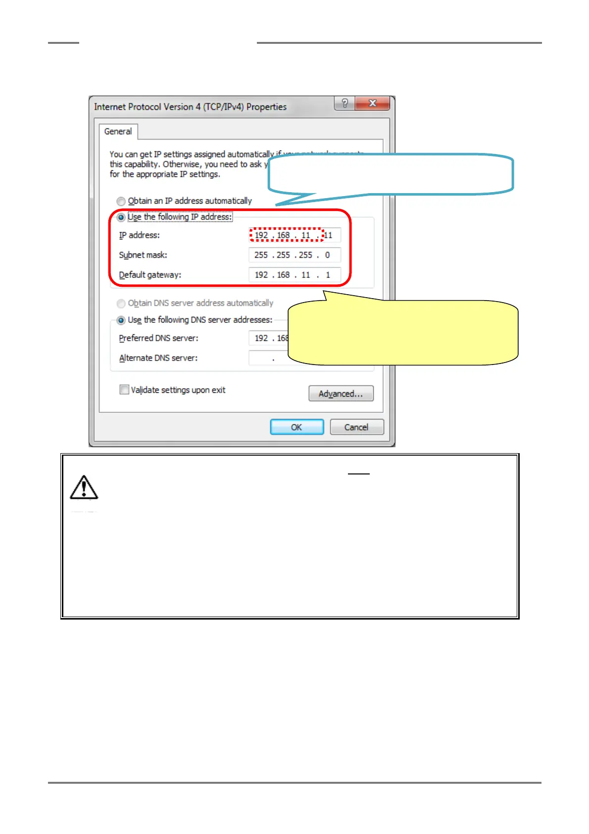 6. In Internet Protocol Version 4 (TCP/IPv4) Properties, select “Use the following IP address” and