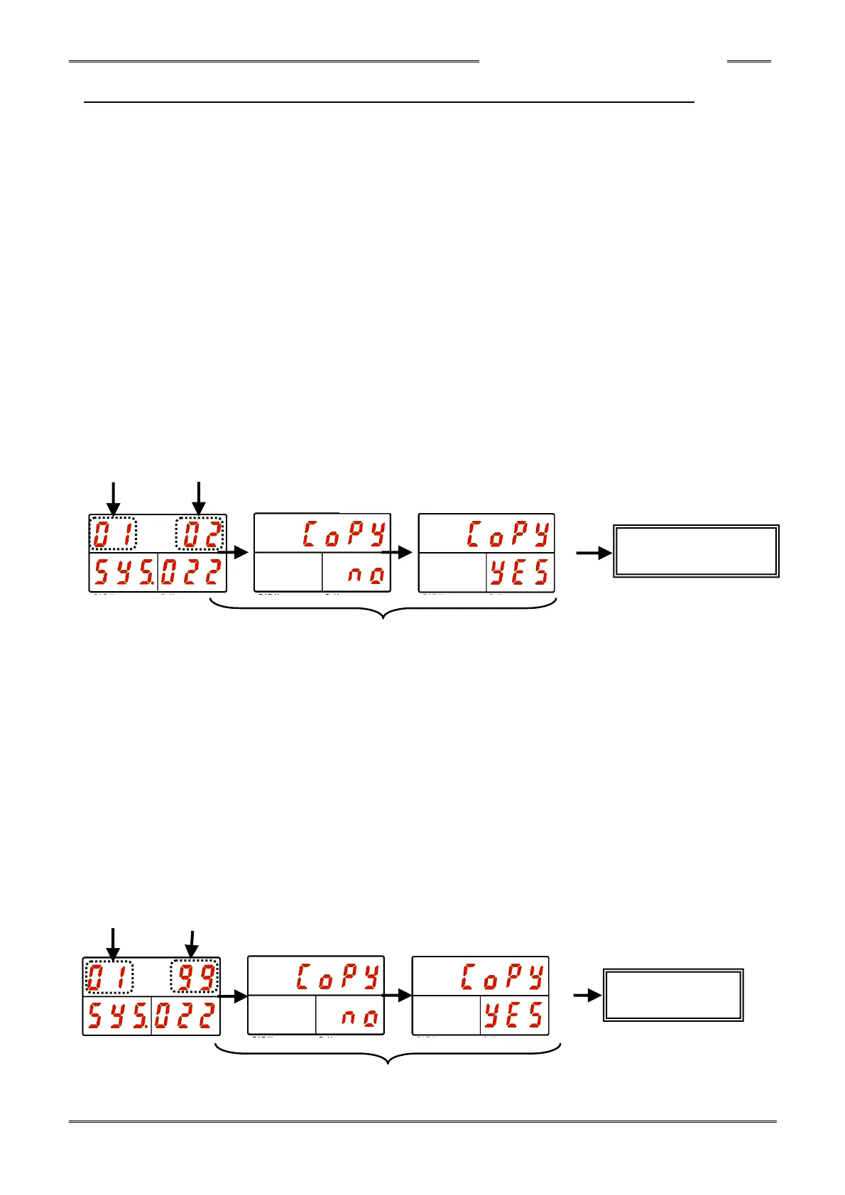 1. Operate the arrow pushbuttons to display “Copy,” with “SYS” indicated in the PAR No. display and