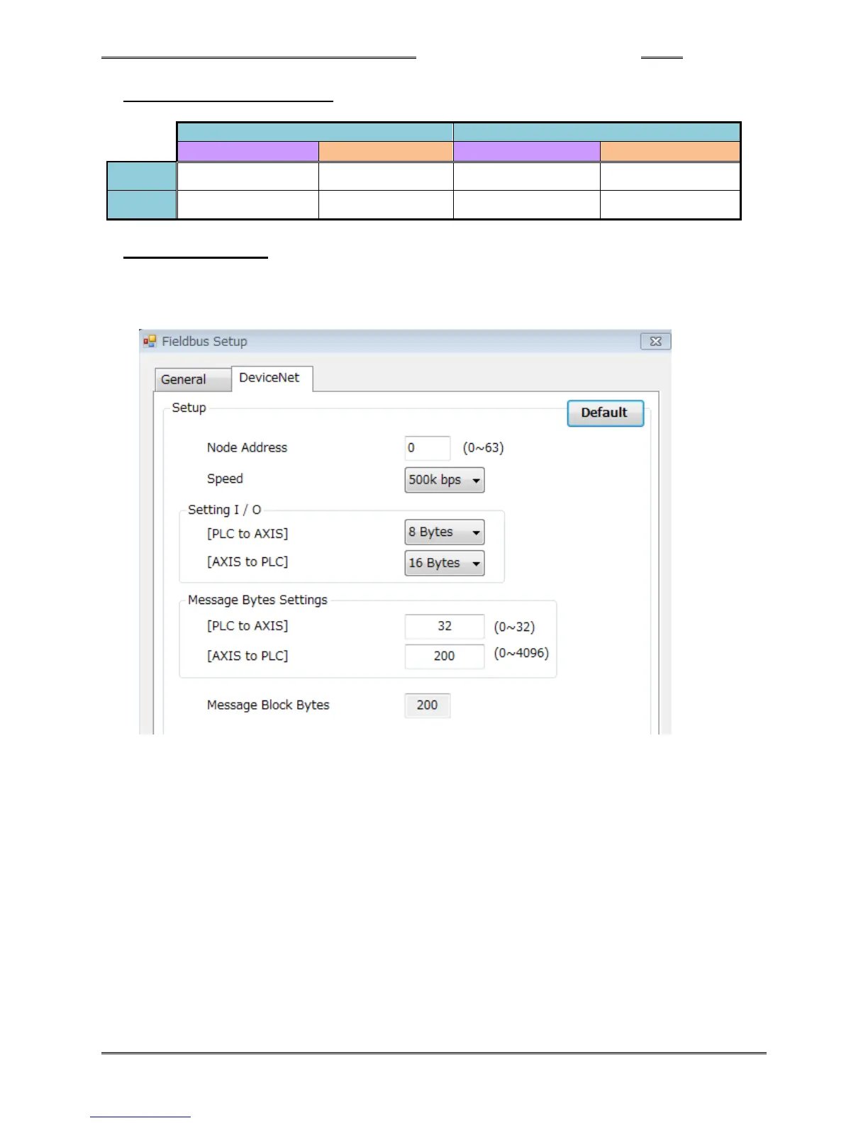 ・Message Bytes Settings [Axis to PLC]: 200bytes
