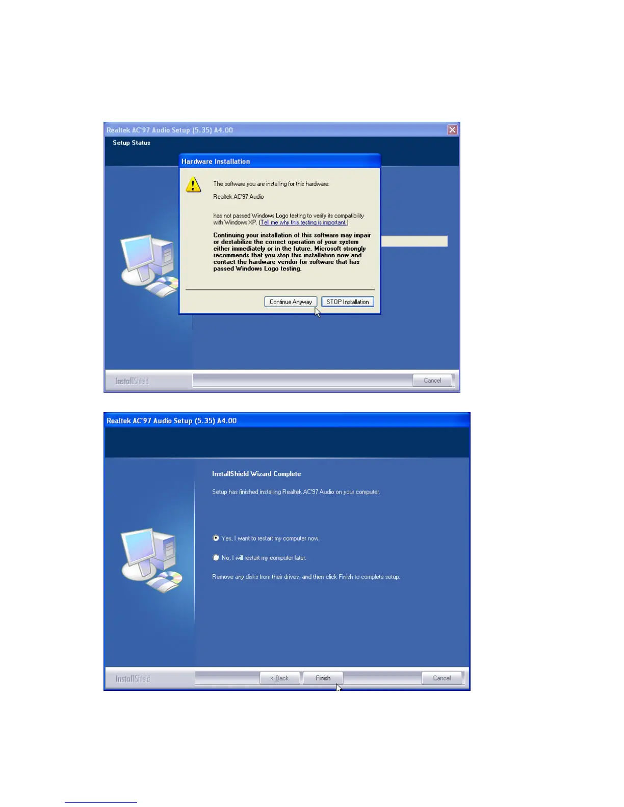 Note: For XP If you receive this warning message, please click Continue Anyway.