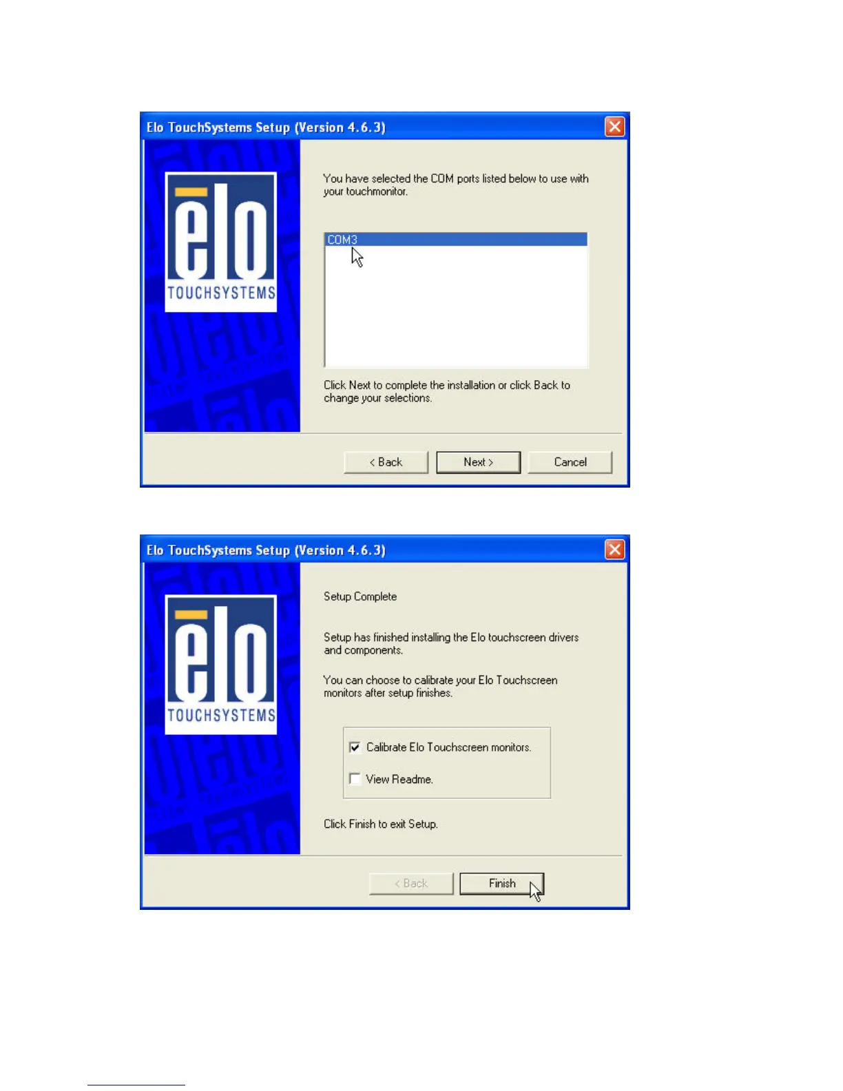 13. Click Finish and continue the procedure of Calibrate Elo Touchscreen