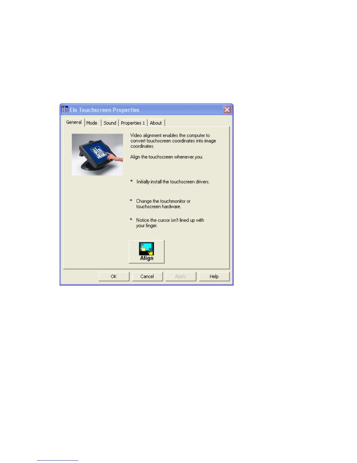 Calibrate the touch screen with the Align button.