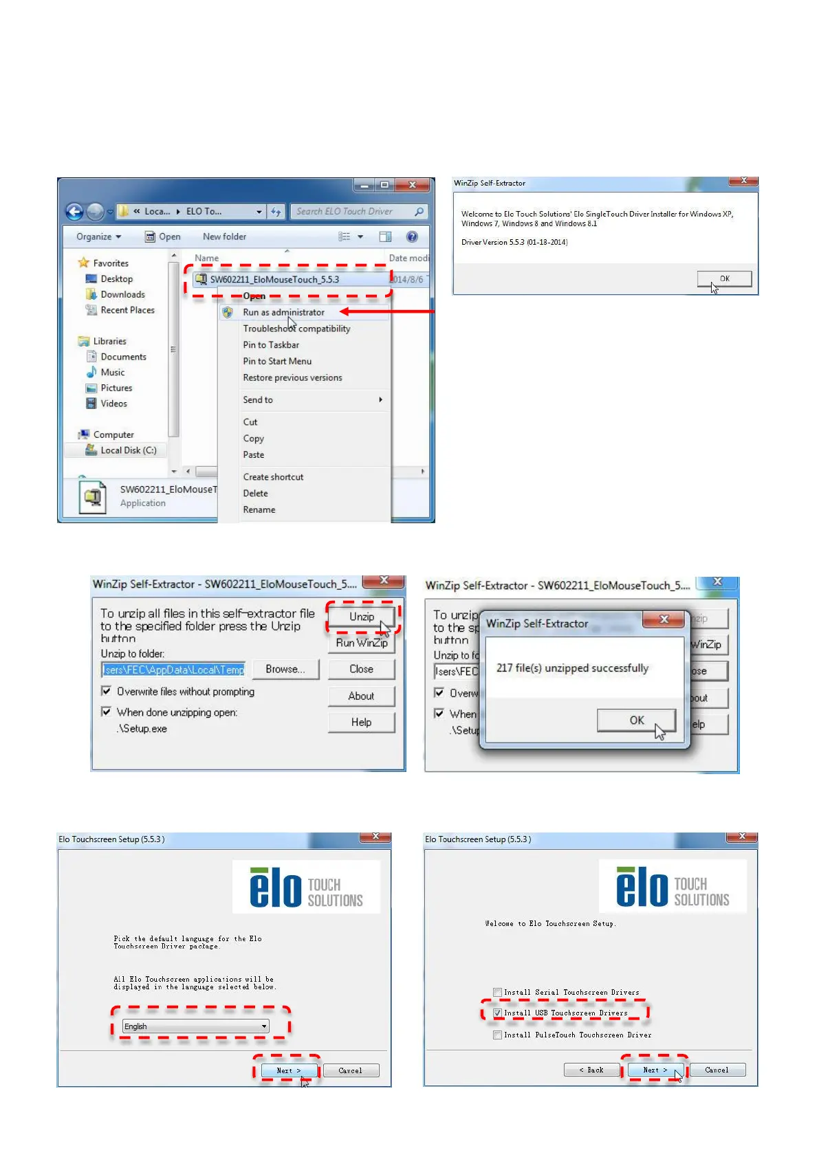 1. Right click on ELO Touch (SW602211_ELOMouseTouch_5.5.3.exe) then click RUN as