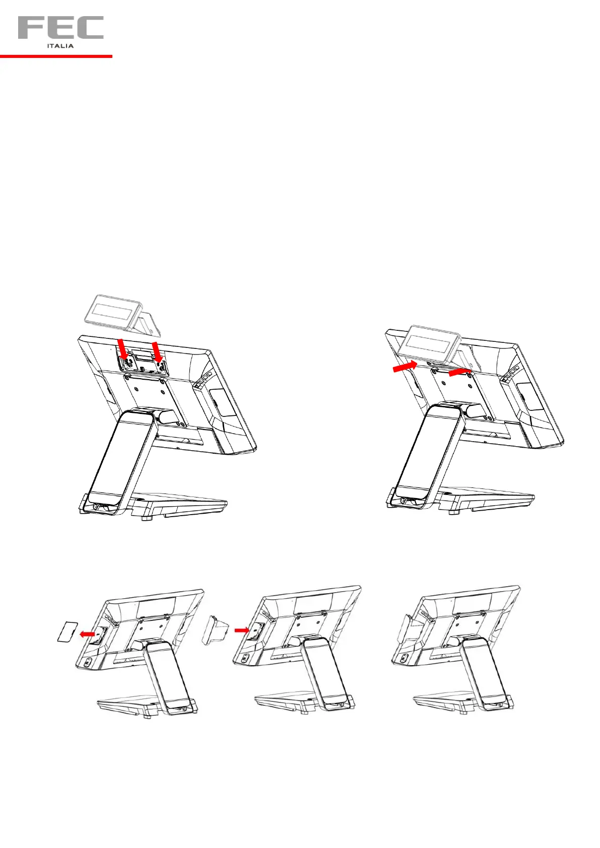 1. Pull up the connector 2. Fasten 2 screws for customer display