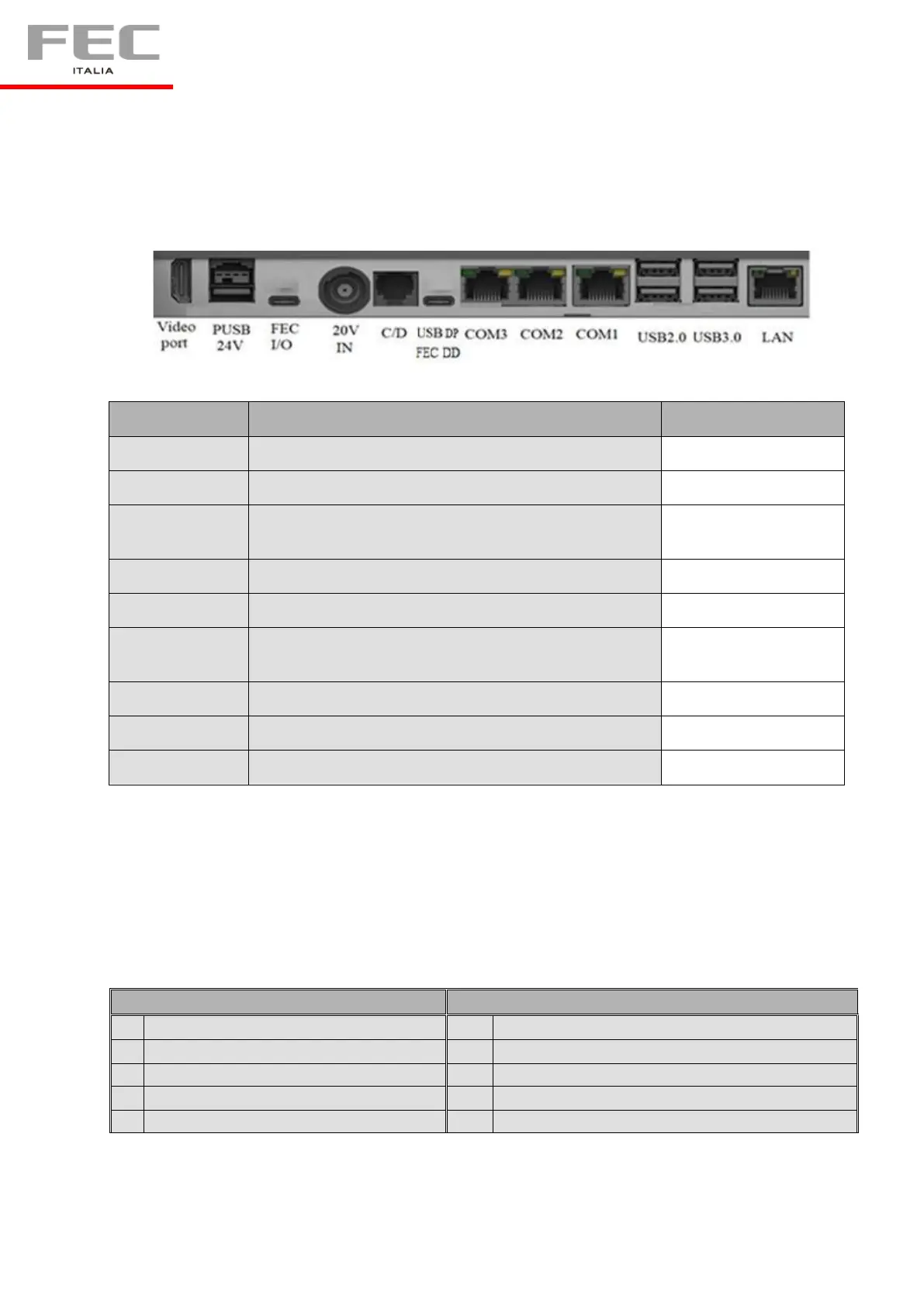 FEC I/O Including 5V/12V/24V (BIOS select) and USB 2.0 x 2