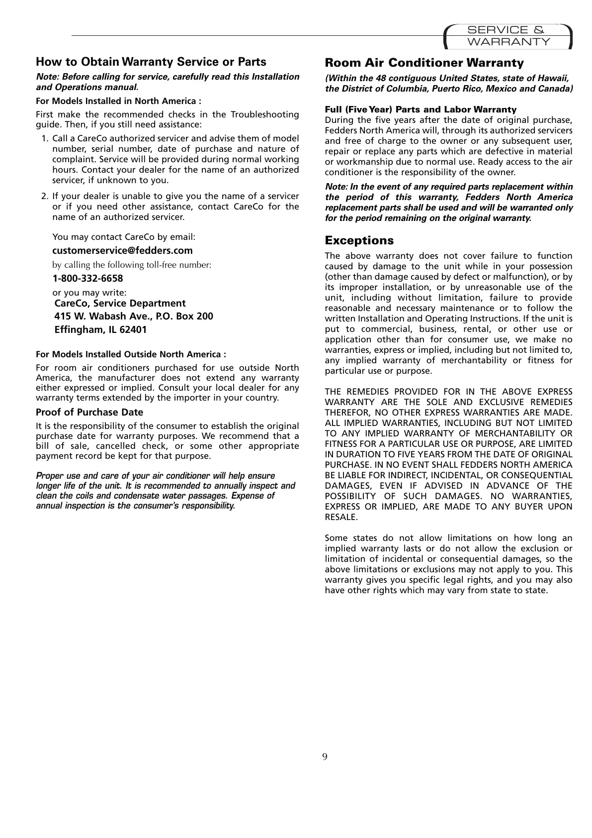 PURCHASE. IN NO EVENT SHALL FEDDERS NORTH AMERICA
