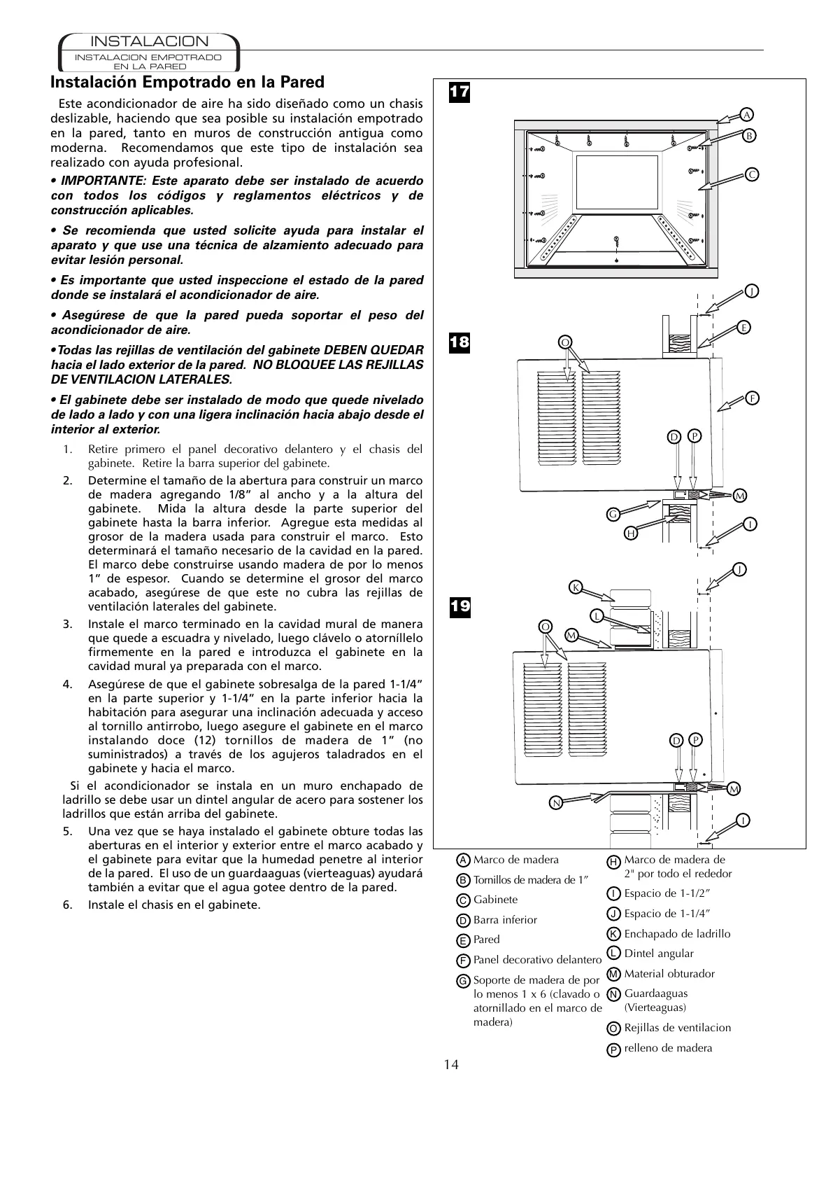 hacia el lado exterior de la pared. NO BLOQUEE LAS REJILLAS