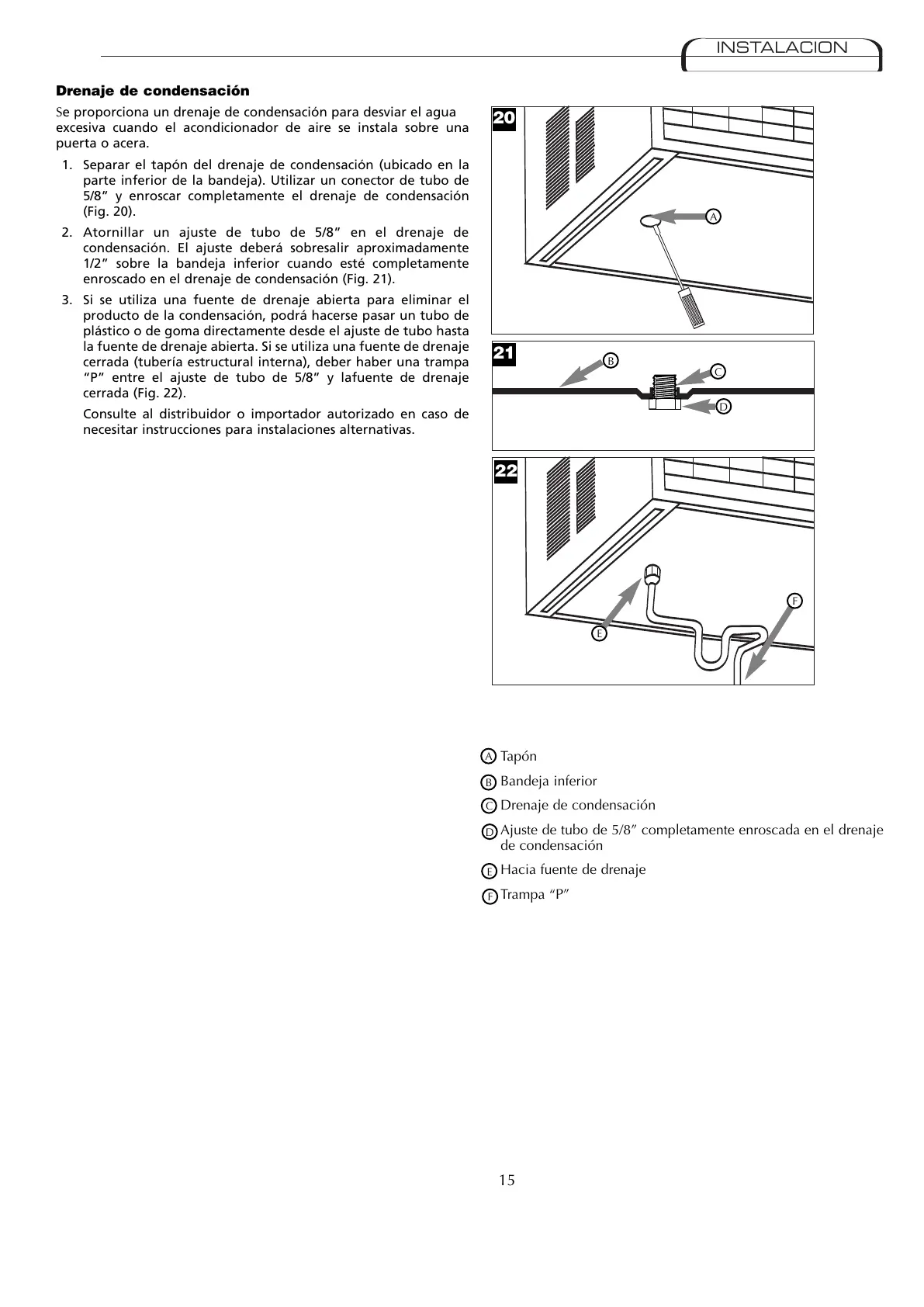 5/8” y enroscar completamente el drenaje de condensación
