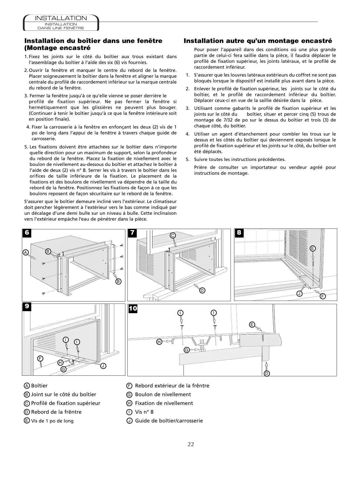 S’assurer que le boîtier demeure incliné vers l’extérieur. Le climatiseur