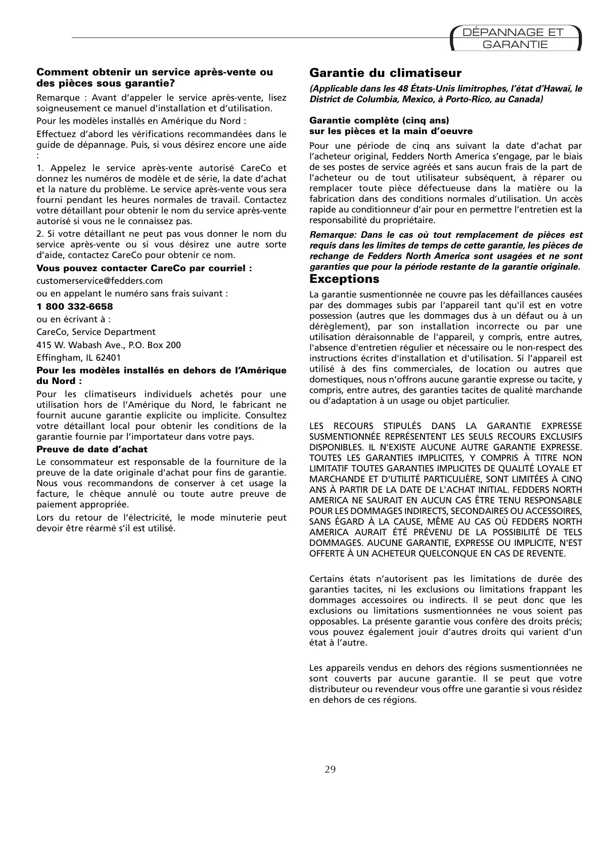 ’acheteur original, Fedders North America s’engage, par le biais