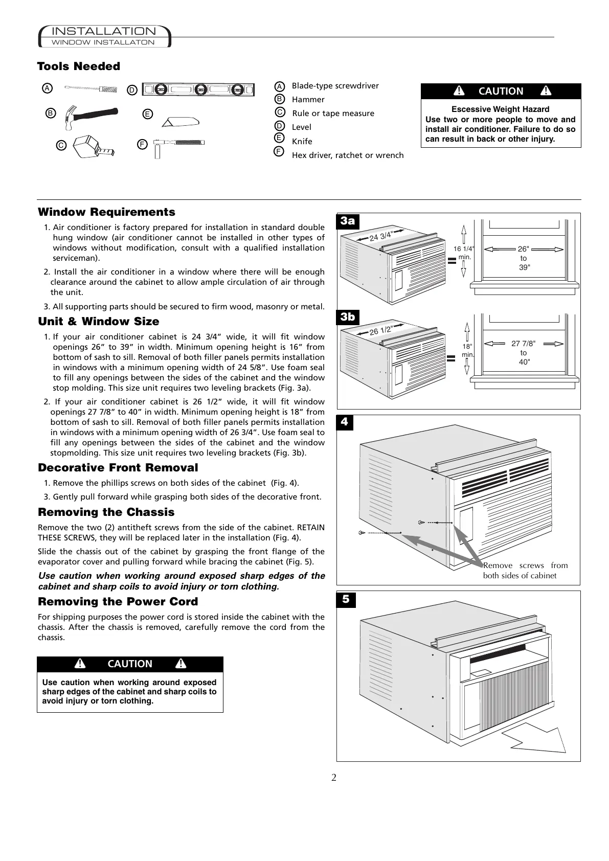 stop molding. This size unit requires two leveling brackets (Fig. 3a).