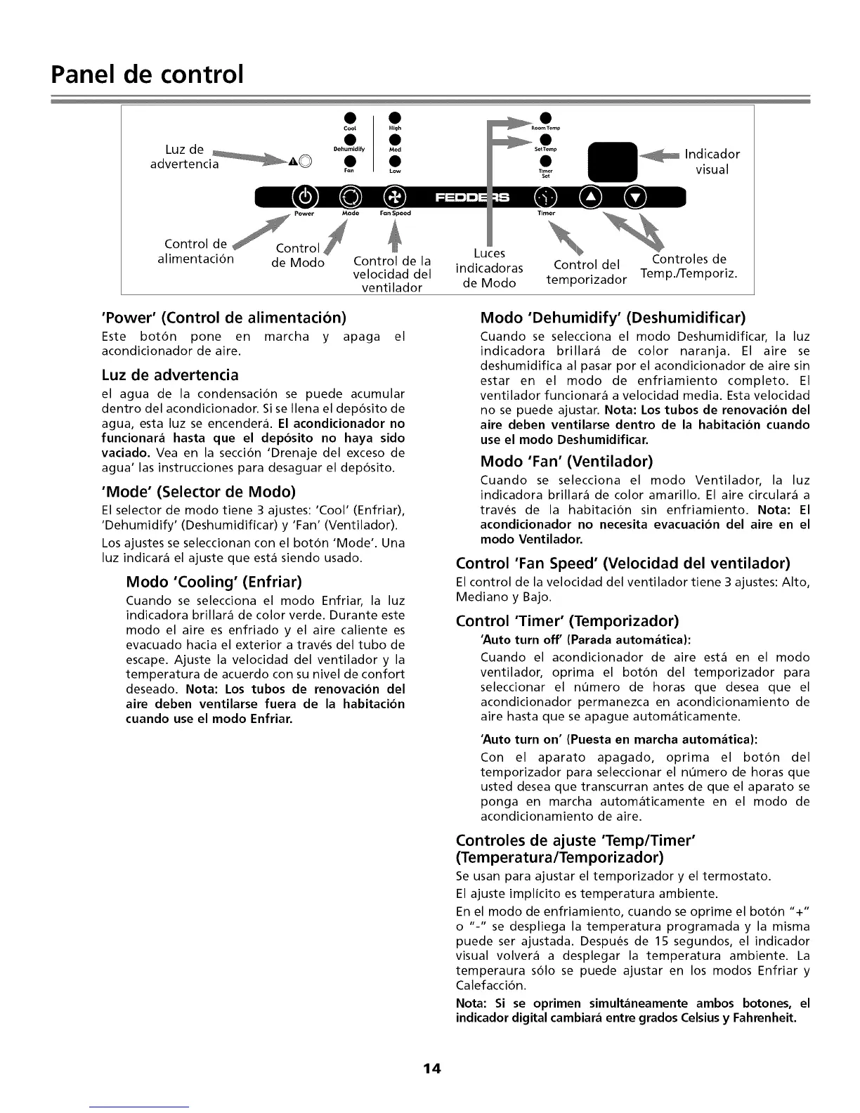 'Dehumidify' (Deshumidificar) y 'Fan' (Ventilador).