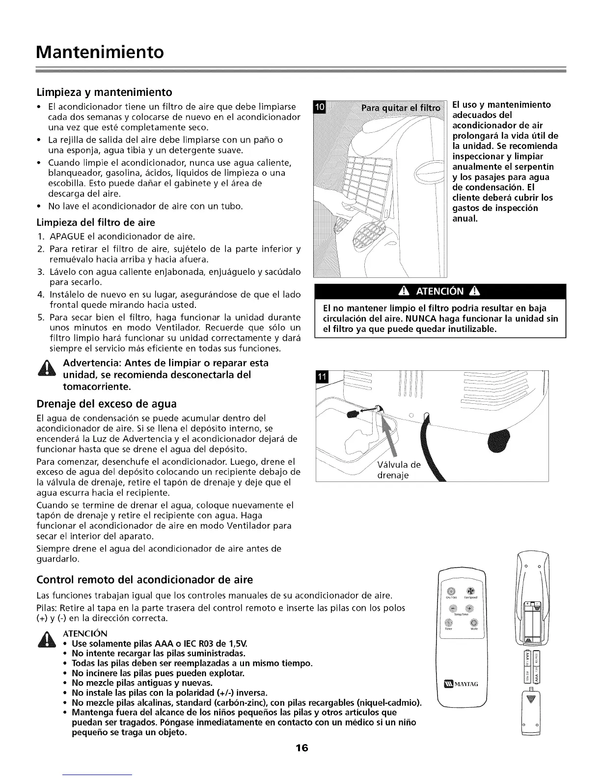 la v_lvula de drenaje, retire el tap6n de drenaje y deje que el