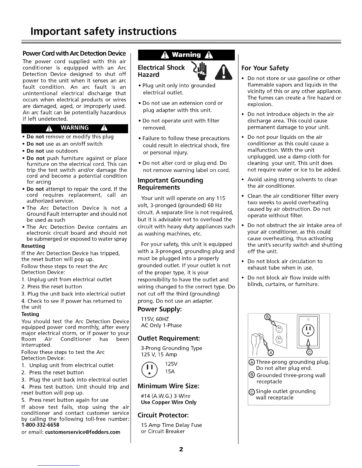 or email: customerservice@fedders.com