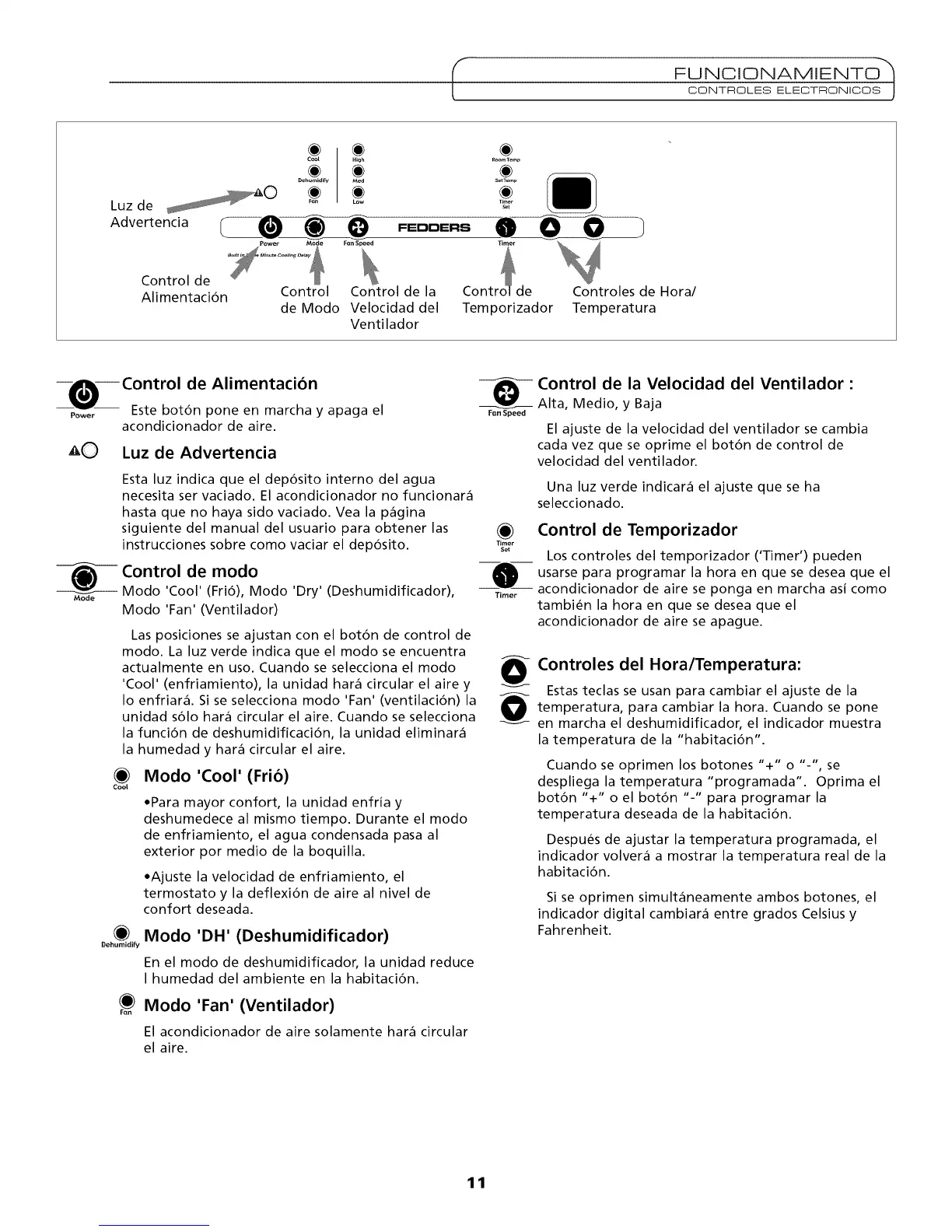 Io enfriar_i. Si se selecciona modo 'Fan' (ventilaci6n) la