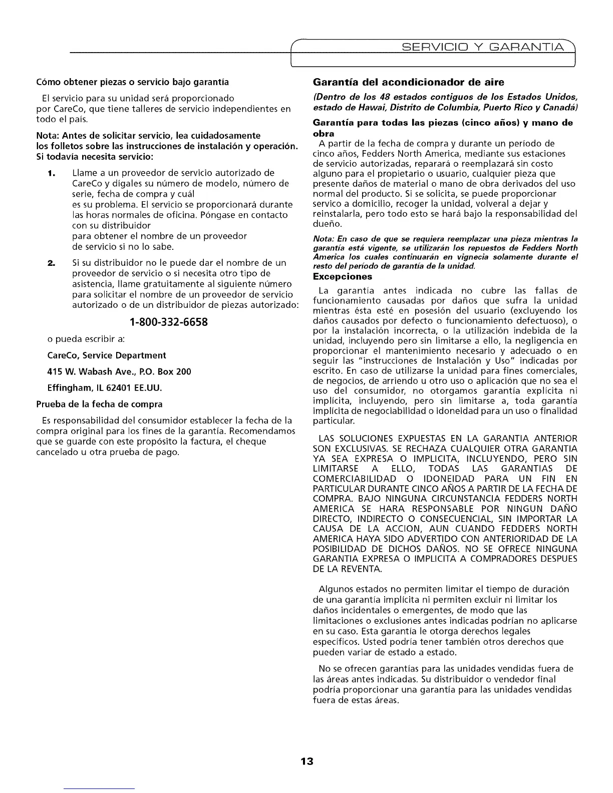 COMPRA. BAJO NINGUNA CIRCUNSTANCIA FEDDERS NORTH