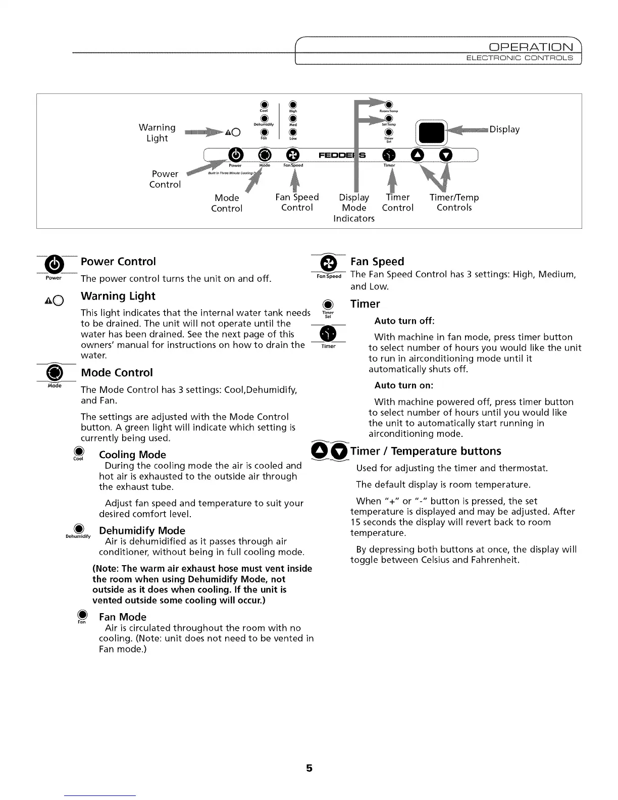 The Mode Control has 3 settings: Cool,Dehumidify,