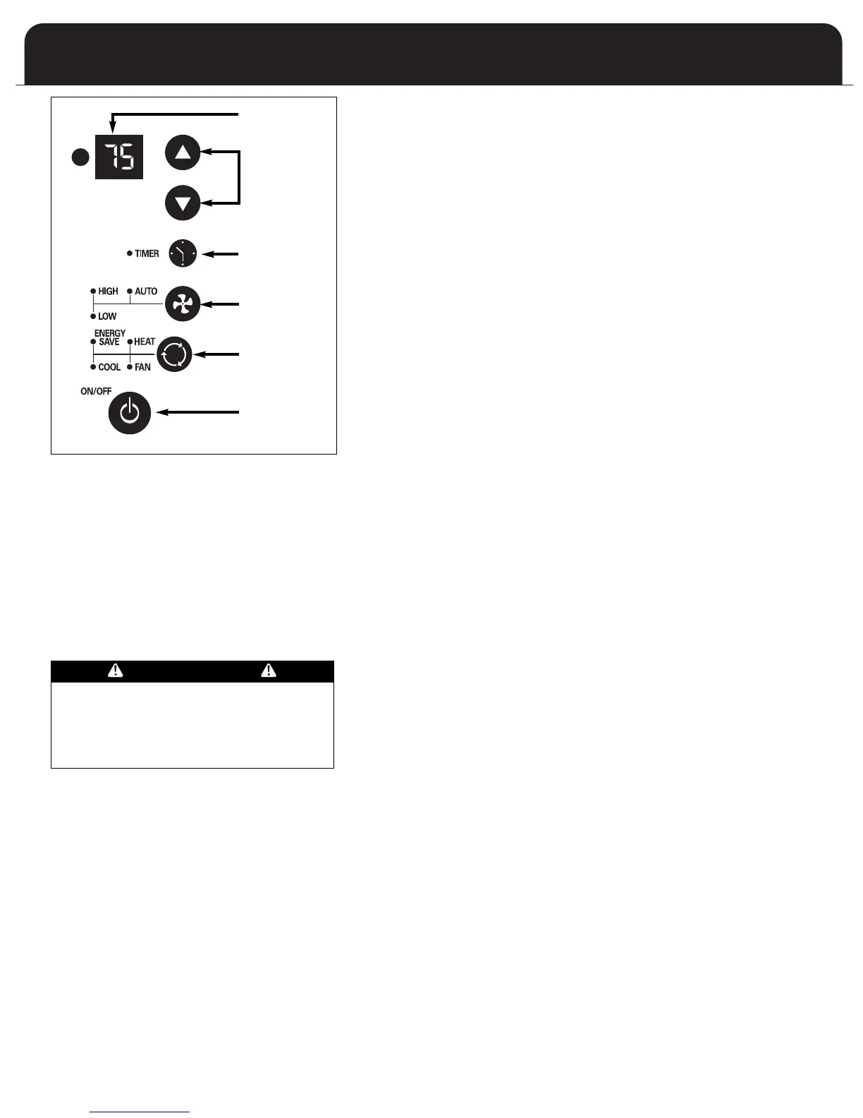 Heat Mode (Heat models only)- The unit will circulate and heat the air.