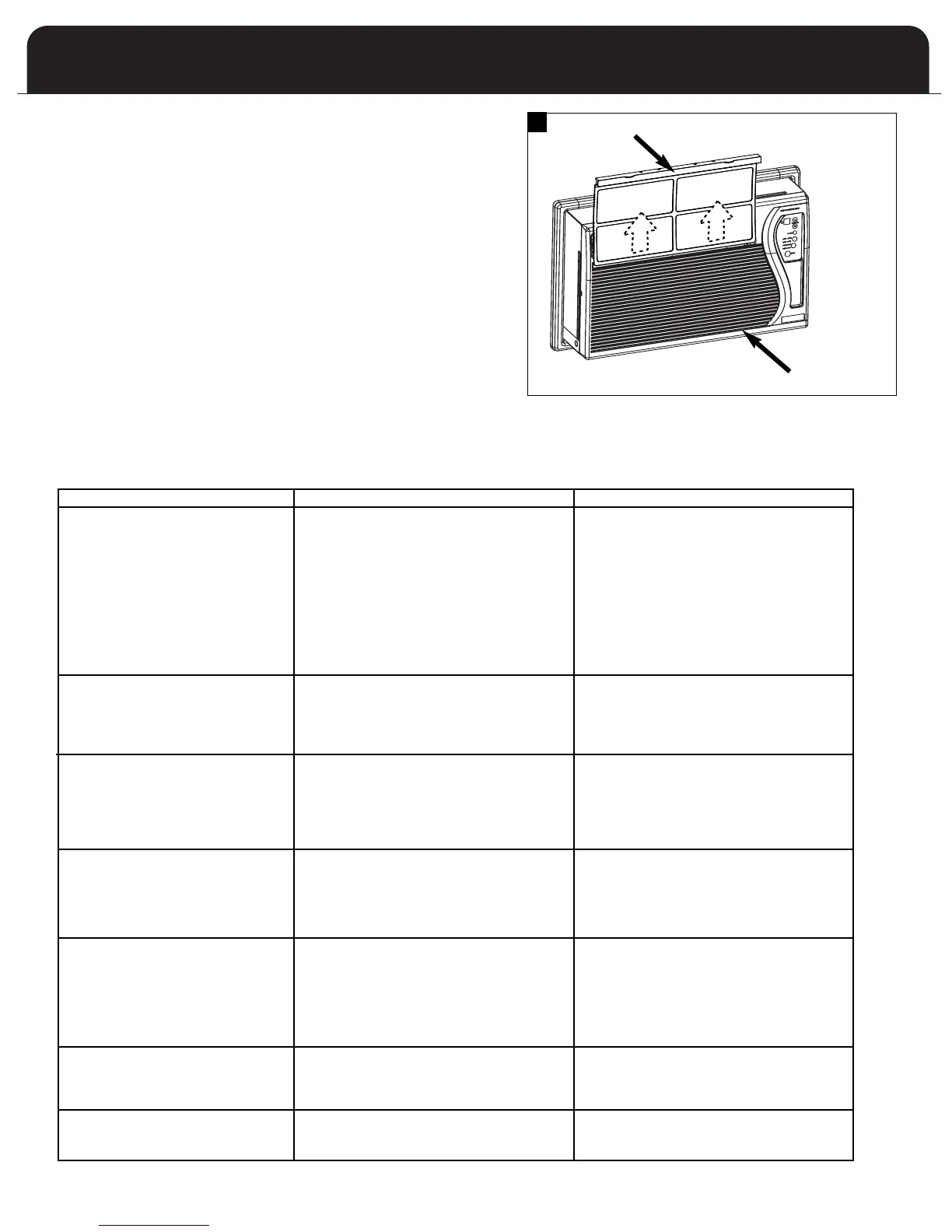Air conditioner will not operate • Wall plug disconnected. • Push plug firmly into wall outlet.