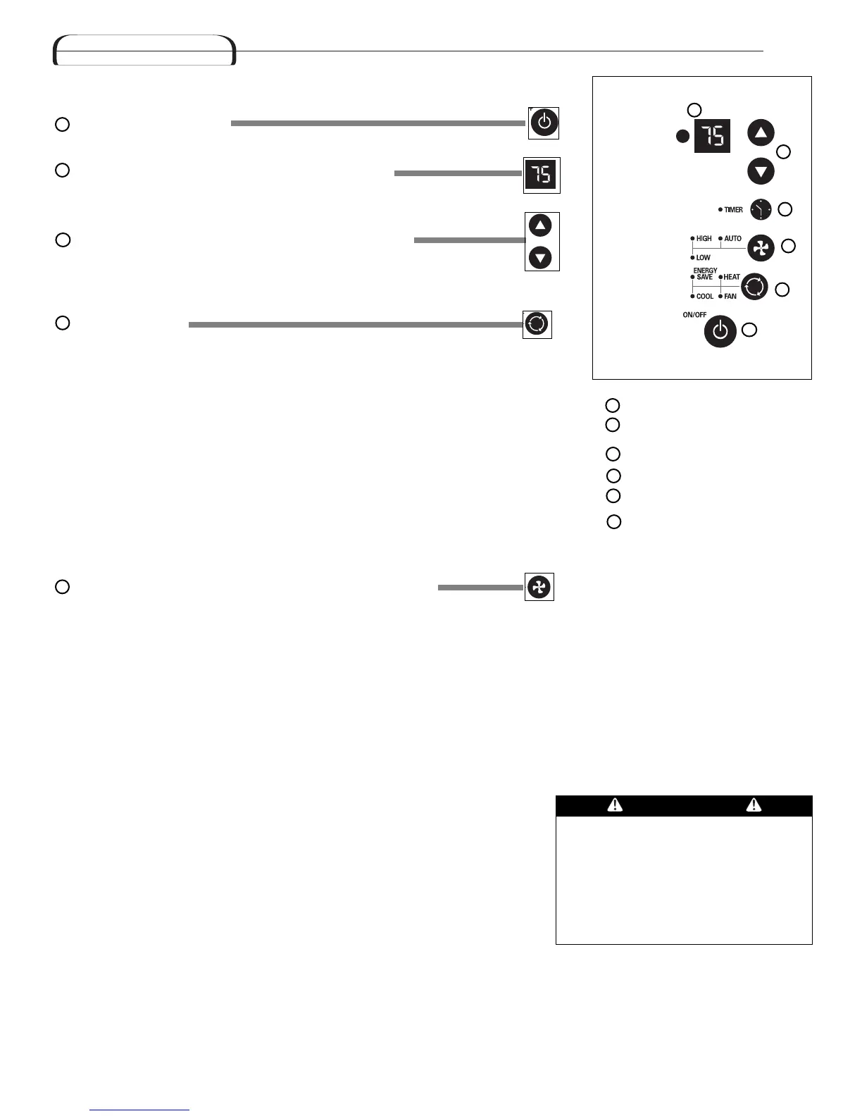 tation de l'élément chauffant, le ventilateur continue à fonctionner (basse vitesse)