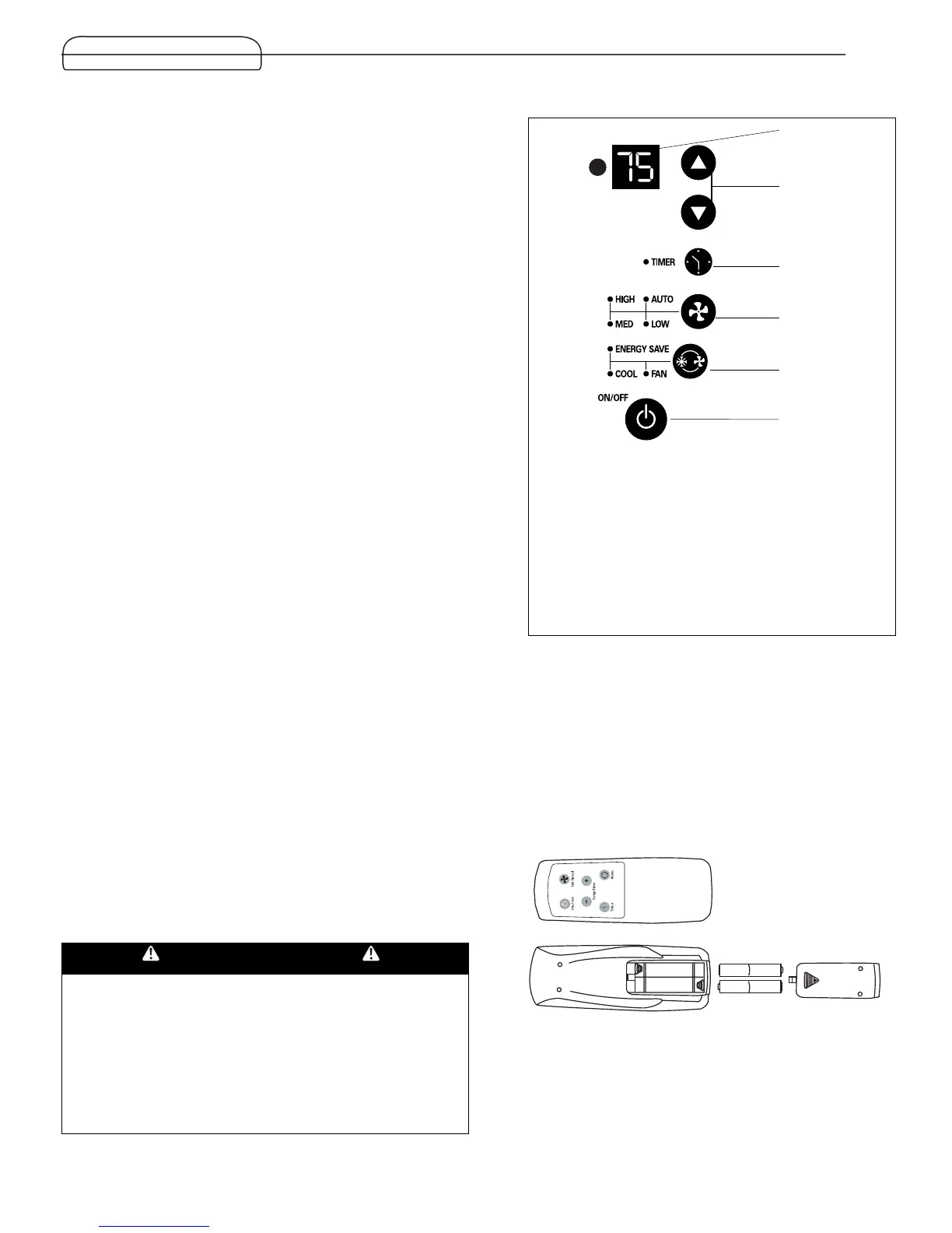 votre climatiseur.Piles: Enlevez le couvercle à l’arrière de la télécommande à