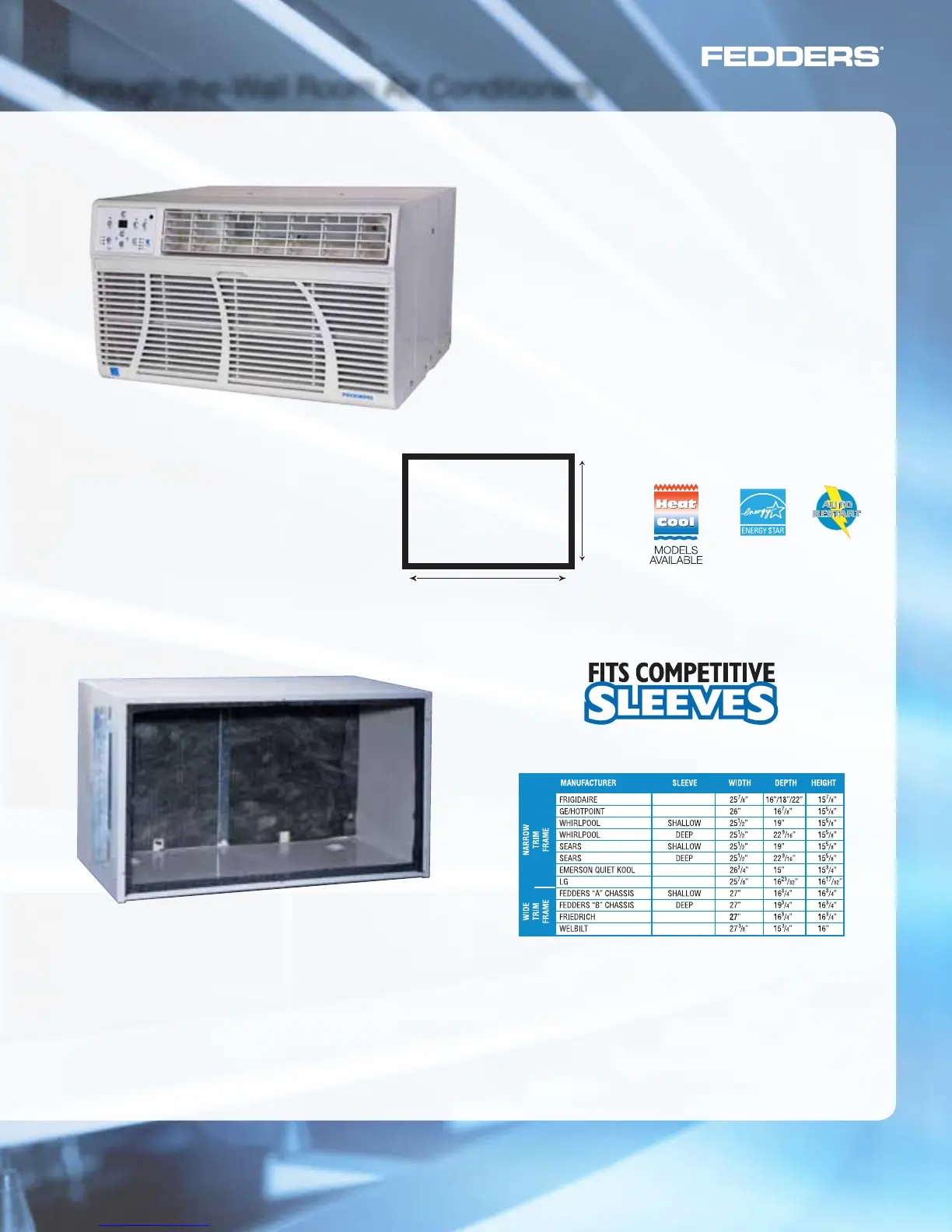 Fedders Wall Sleeves (A70052A) include front and rear covers, plus a rear grille.