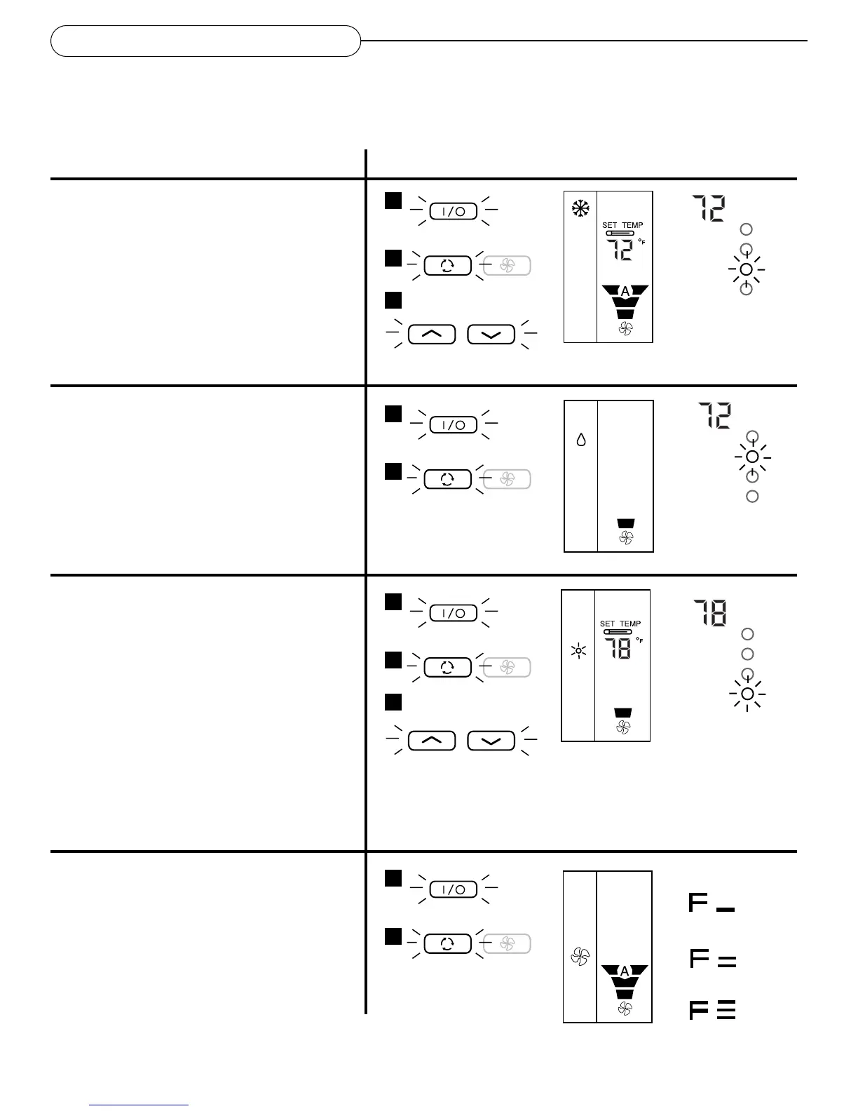 • Press the Mode button until the Fan mode is