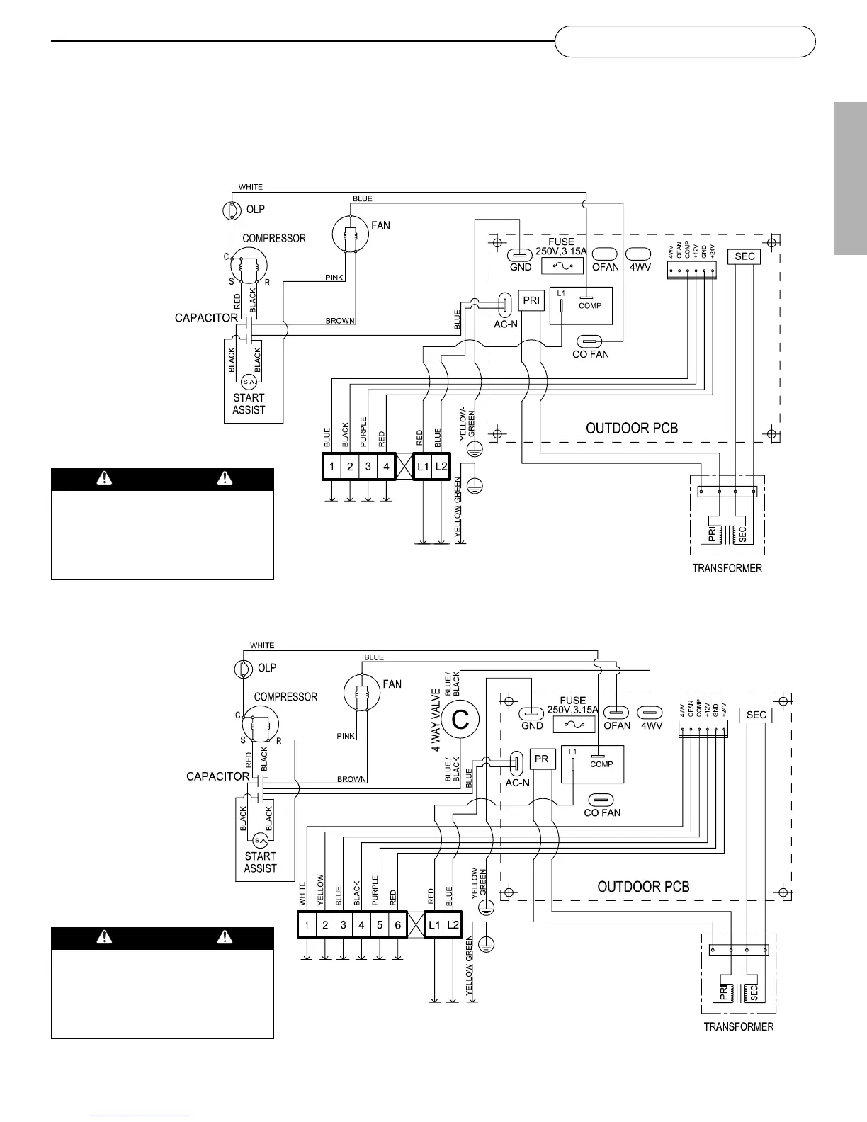 Below are wiring diagrams for both cool only and heat pump units