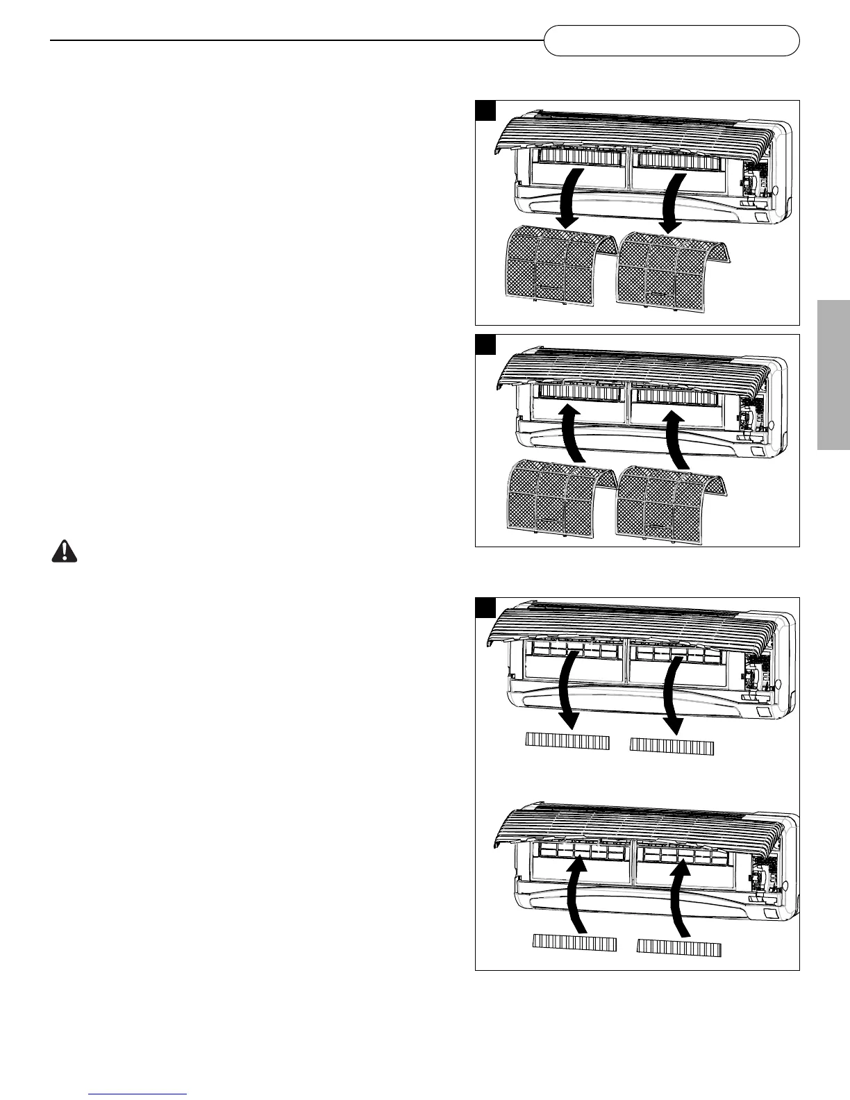 • Para retirar los filtros de aire. levante la rejilla delantera y jale