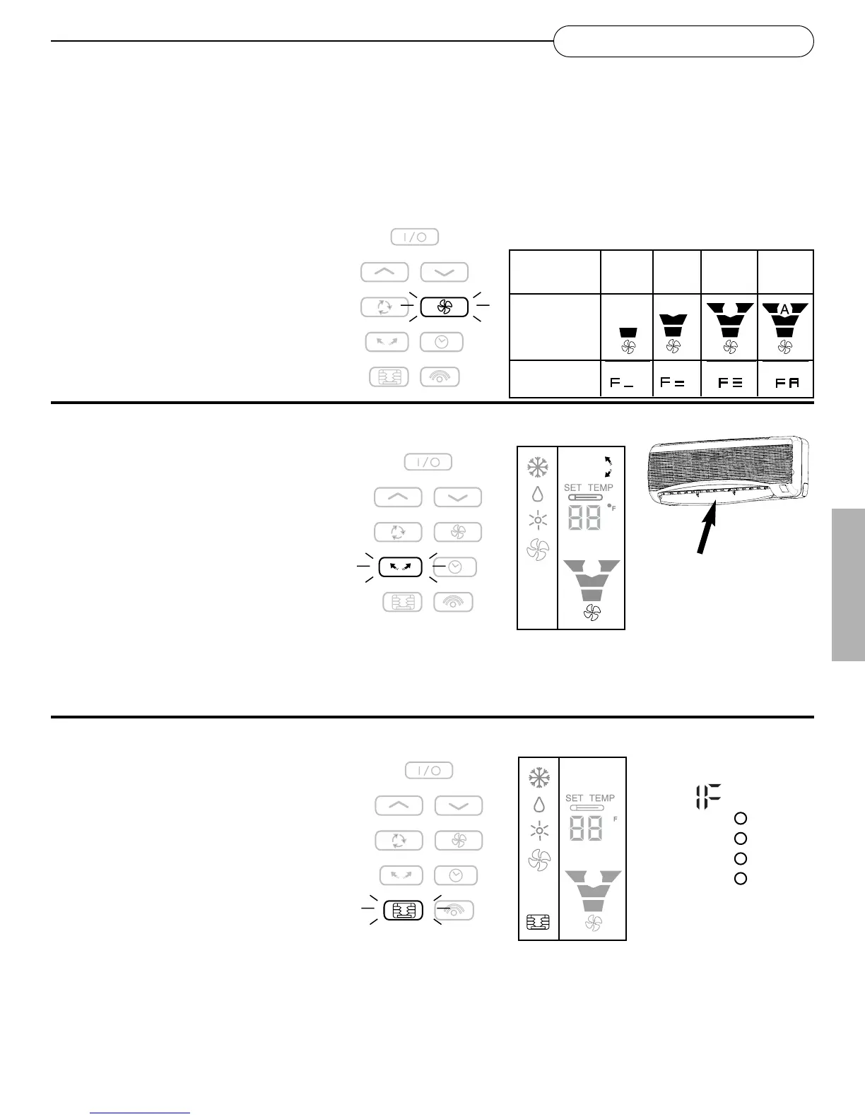 Vitesse du ventilateur, basculement (orientation du jet d’air) et climatisation intelligente (mémoire)