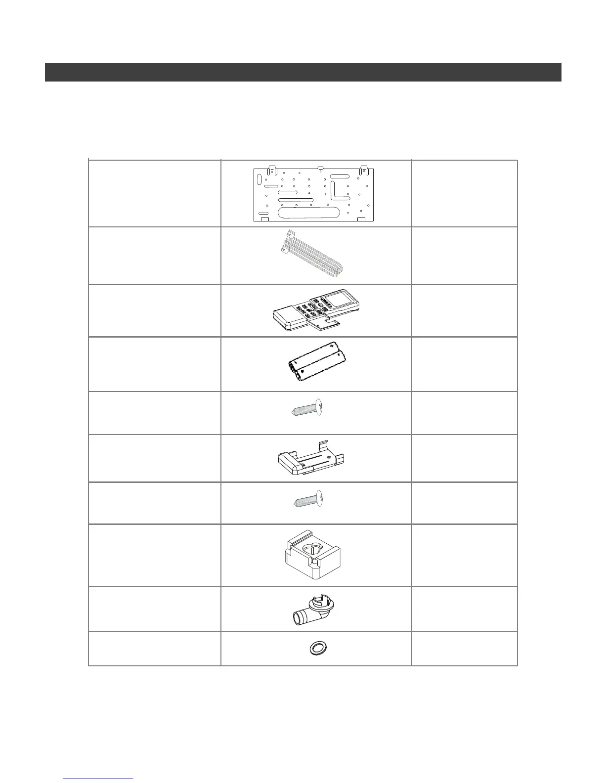 A number of small parts have been packed with the indoor unit. Please check the
