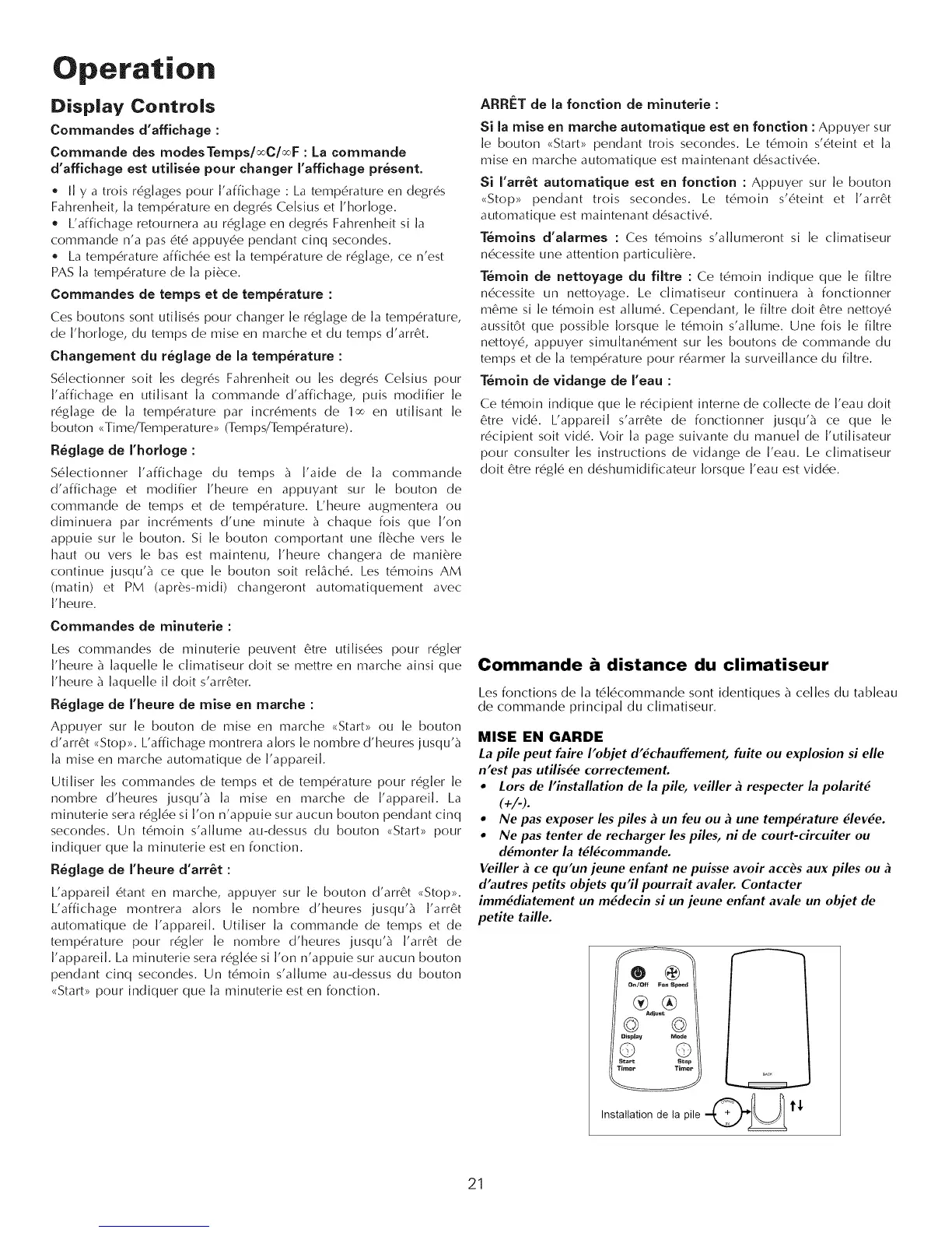 Ces boutons sont utilis6s pour changer le rr_glage de la temperature,