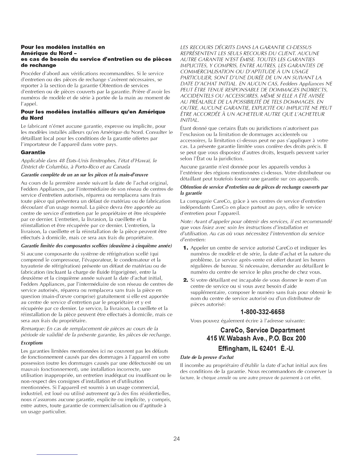 Fedders Appliances, par I'interm6diaire de son r6seau de centres de