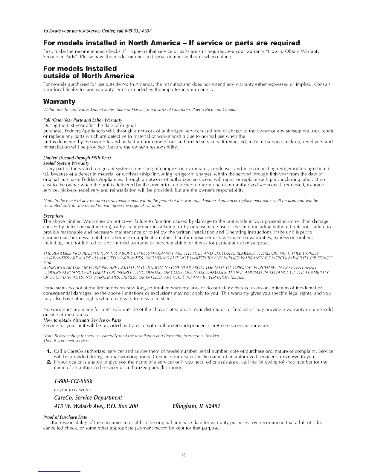 Service for your unit will be provided by CareCo, with authorized independent CareCo servicers nationwide.