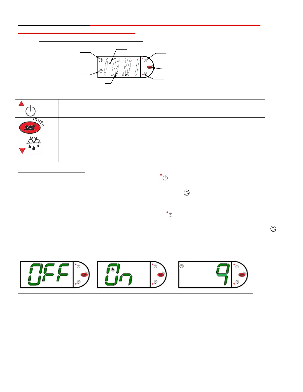 and forth between the relative current case temperature and “Off”. The compressor run indicator
