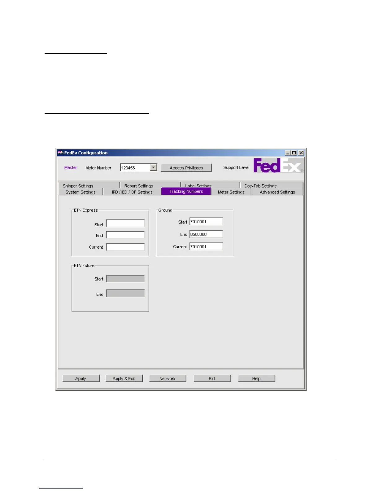 Tracking Numbers Settings