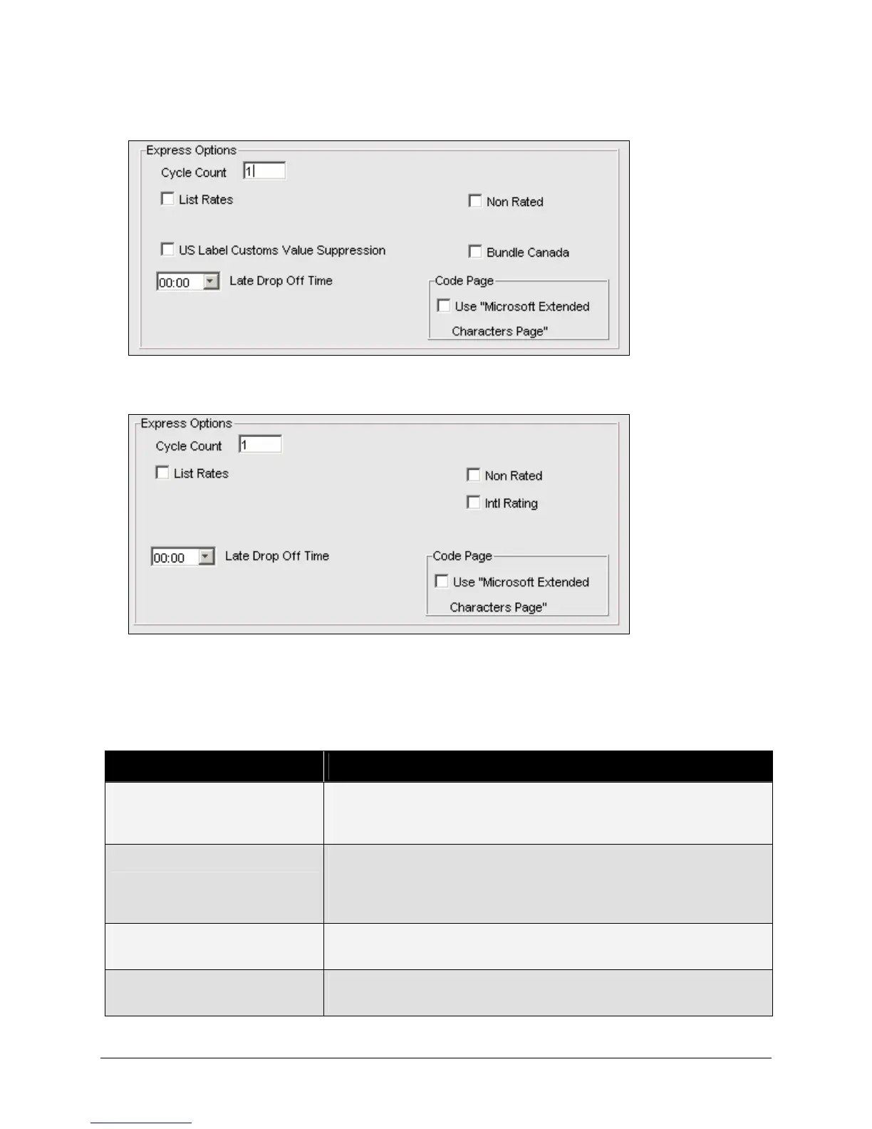 The following Express Options section of the Meter Settings window appears for non-U.S. or CA origin: