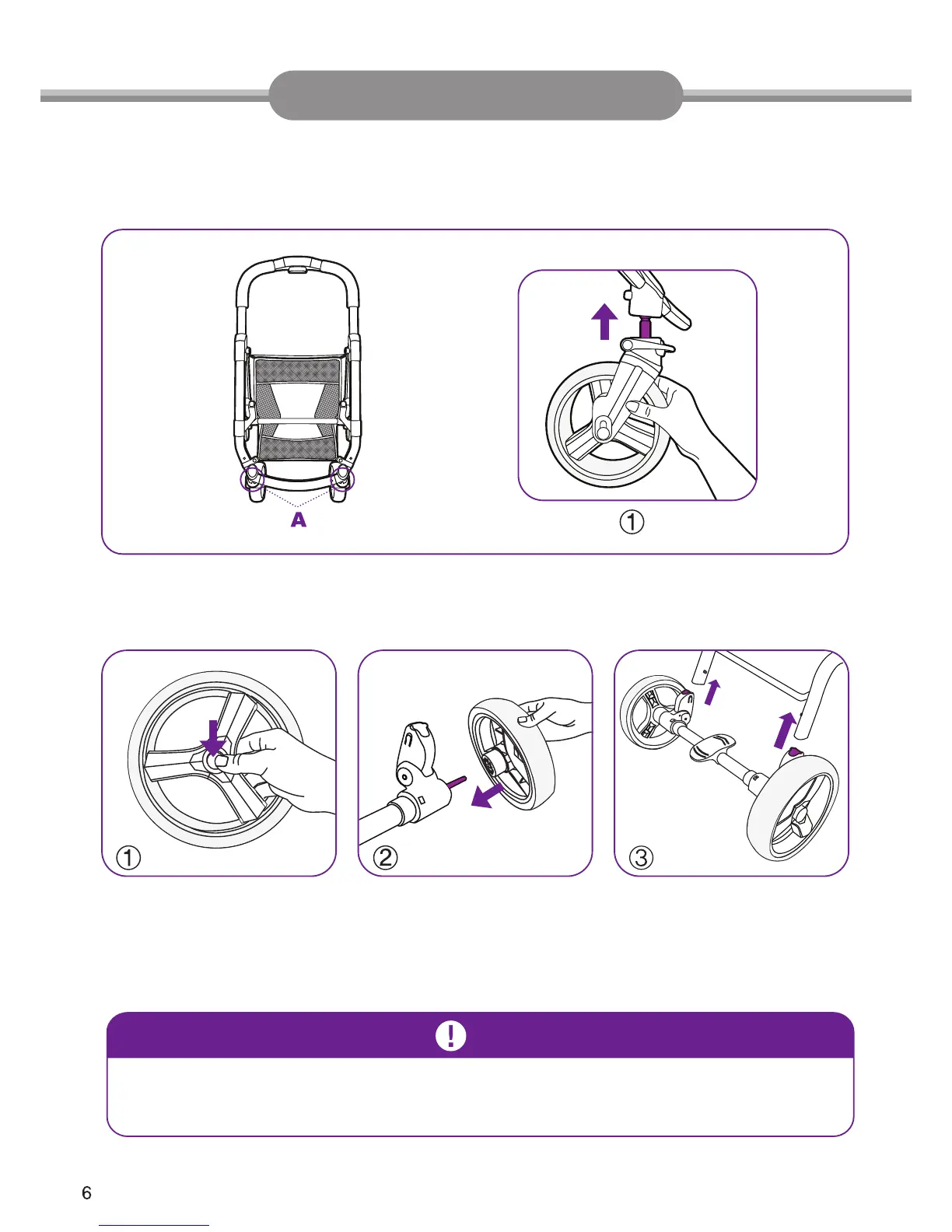 1. Front wheel assembly: insert the front wheel bar in the arrow direction into the A part (in the left and