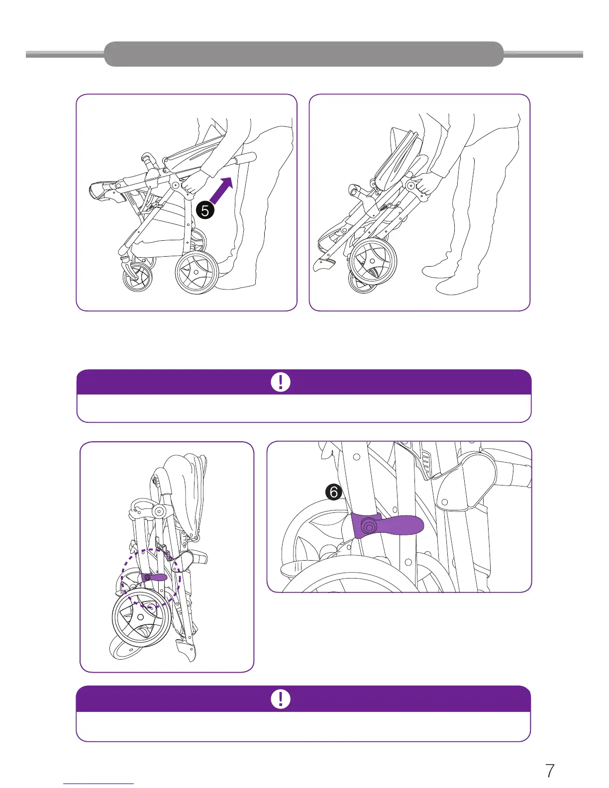 When folding or unfolding the stroller, keep the baby away from the stroller.
