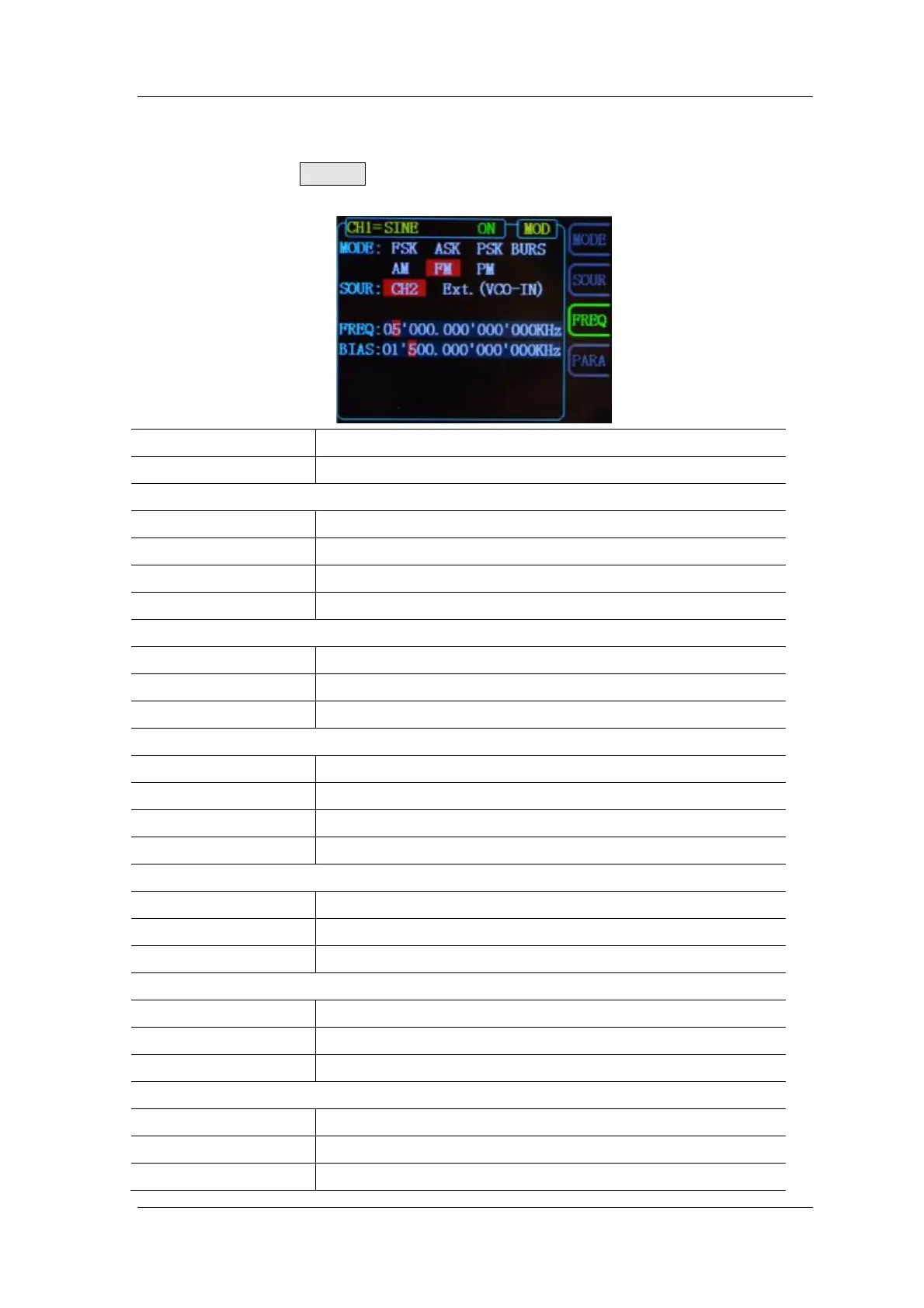 Press the MOD button to enter the modulation function interface.