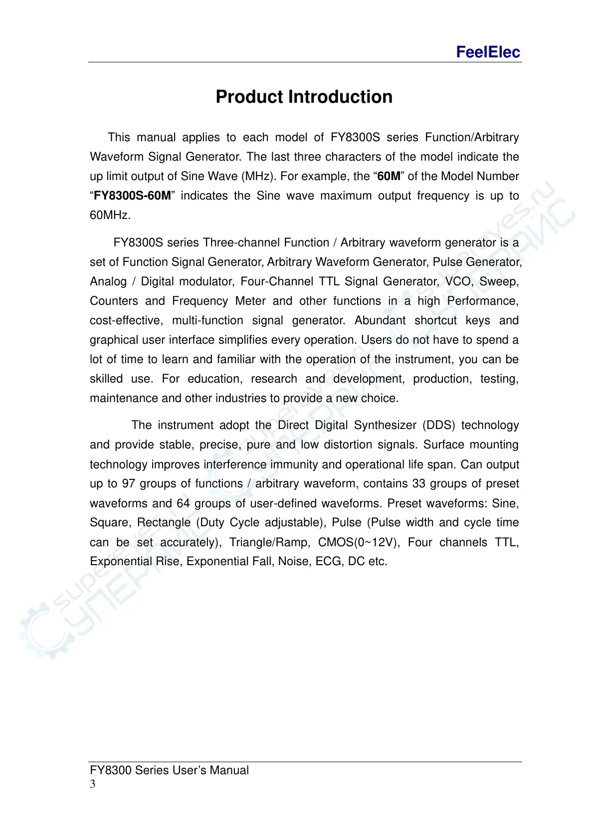 This manual applies to each model of FY8300S series Function/Arbitrary